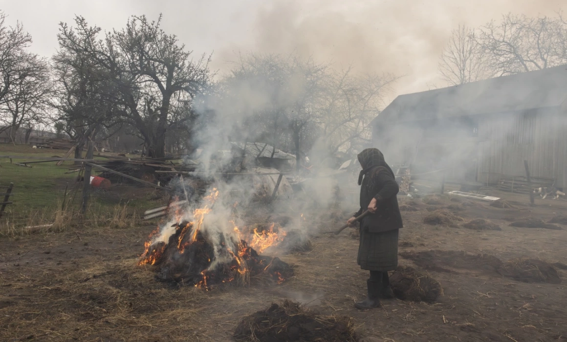 Fotografia principală: Bunica face curățenia de primăvara în curte și arde uscăciuni.