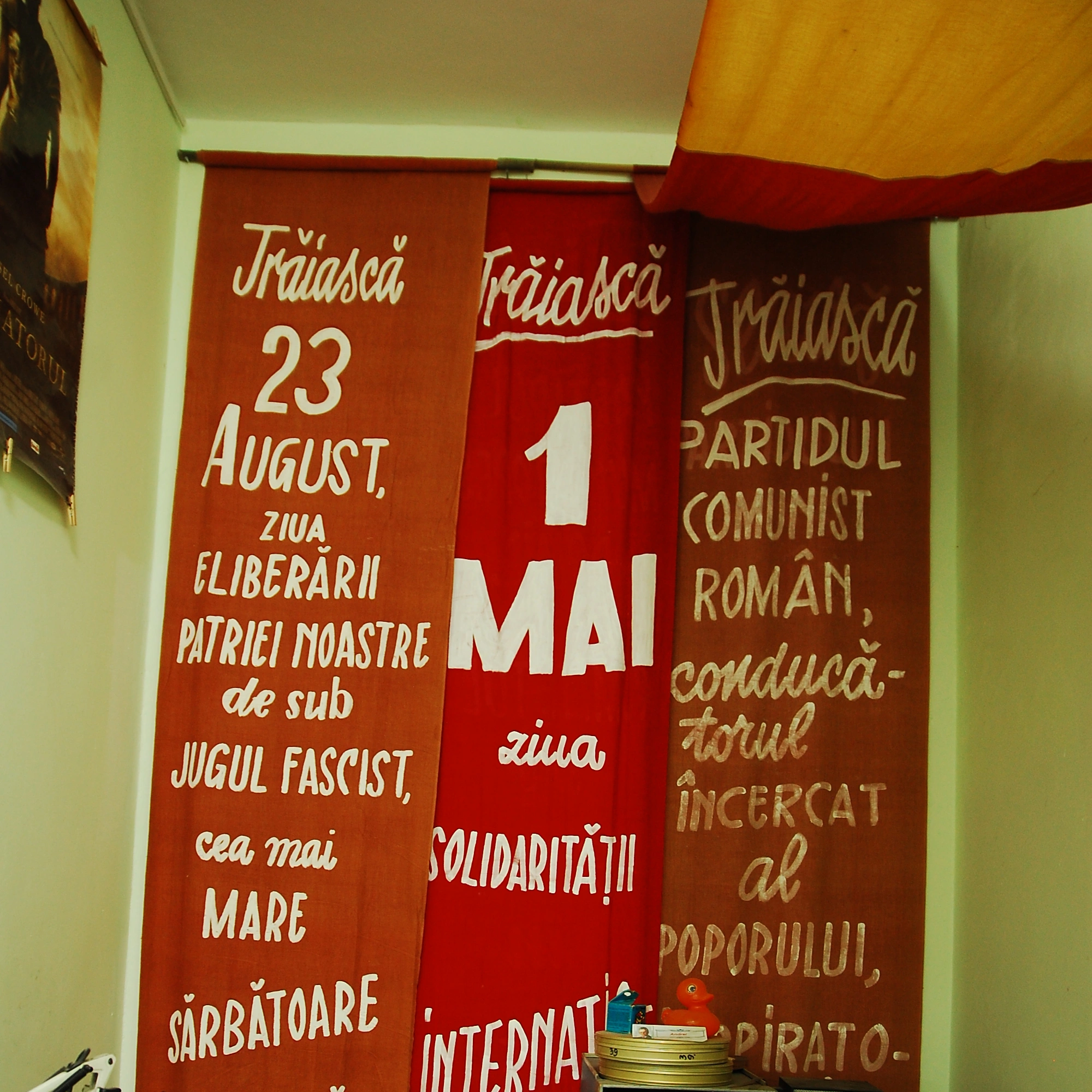 Modul în care se făcea propagandă în comunism pe toate nivelurile este expus și în spațiul Muzeului Cineastului Amator. Până și cinemaurile și cinecluburile trebuiau să aibă un portret al tovarășului Ceaușescu atârnat la loc de cinste. La fel și cu pancartele cu lozinici și sloganuri patriotice, care rămân până în ziua de azi atârnate în locul unde au fost găsite, în sala de proiecție al fostului cinema.