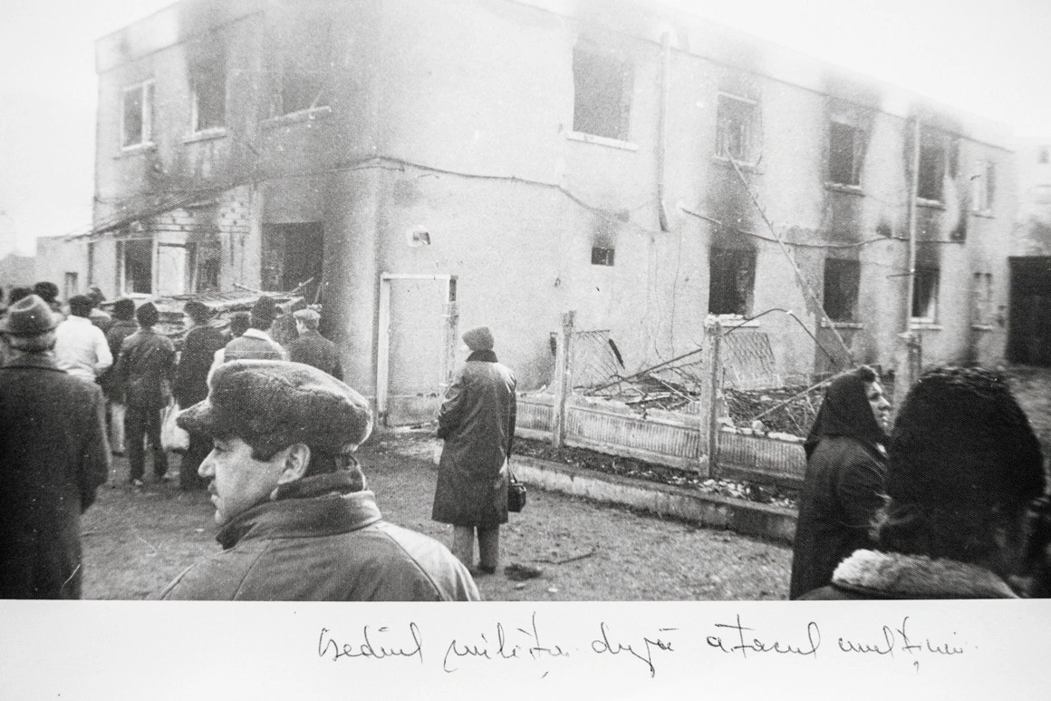 Când n-au mai putut respira de la fum, oamenii din sediul miliției au deschis geamurile și ușile. Unii au fugit prin pădure îmbrăcați în civili, alții au urcat la etaj. Când flăcările i-au cuprins cu totul, s-au aruncat în primele rânduri de protestatari. „A fost haos total. Fiecare, dacă avea dușmani pe acolo, îl căuta să se răzbune”, spune Cristea. „Au fost bătuți milițieni, au fost bătuți și care n-au meritat. Nu mai aveai cu cine să discuți acolo”.