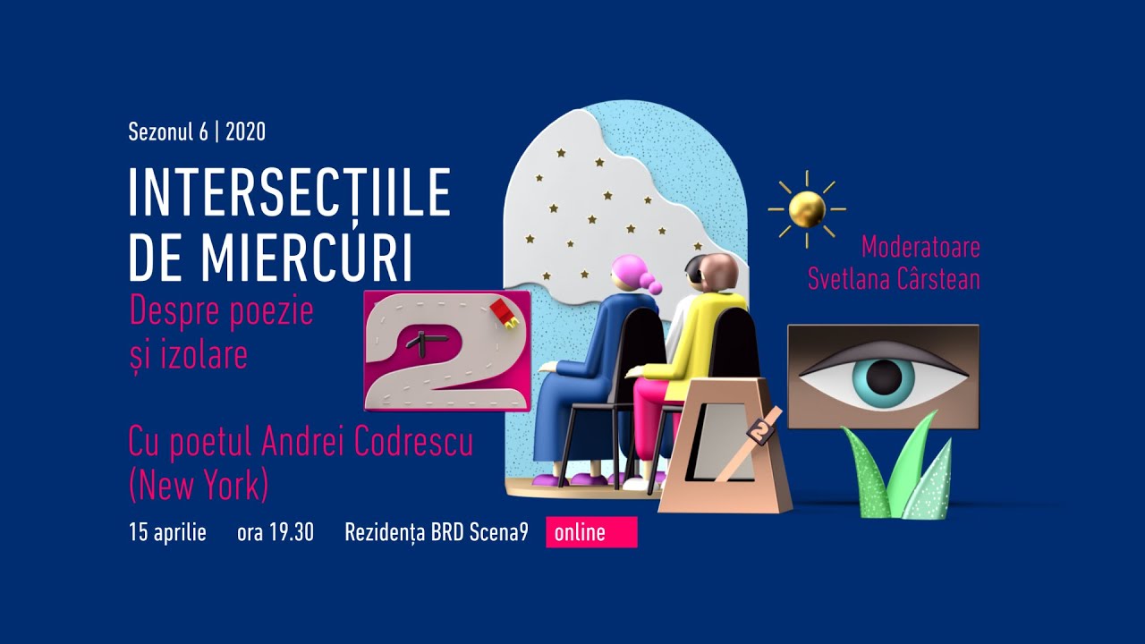 În vremuri de pandemie, Rezidența BRD Scena9 continuă seria evenimentelor cu care v-a obișnuit, doar că în varianta online. În fiecare săptămână, pe Facebook și Youtube, voci relevante din zona culturală și artistică susțin performance-uri în cadrul programului Post Muzica, inițiat de Mitoș Micleușanu, și discută despre vremurile actuale în conferințele Intersecțiile de miercuri moderate de scriitoarea Svetlana Cârstean. Nu i-am uitat nici pe cei mici, pentru care avem, în fiecare weekend, Intersecțiile de sâmbătă pentru copii cu scriitoarele Ana Maria Sandu și Svetlana Cârstean pe Zoom.