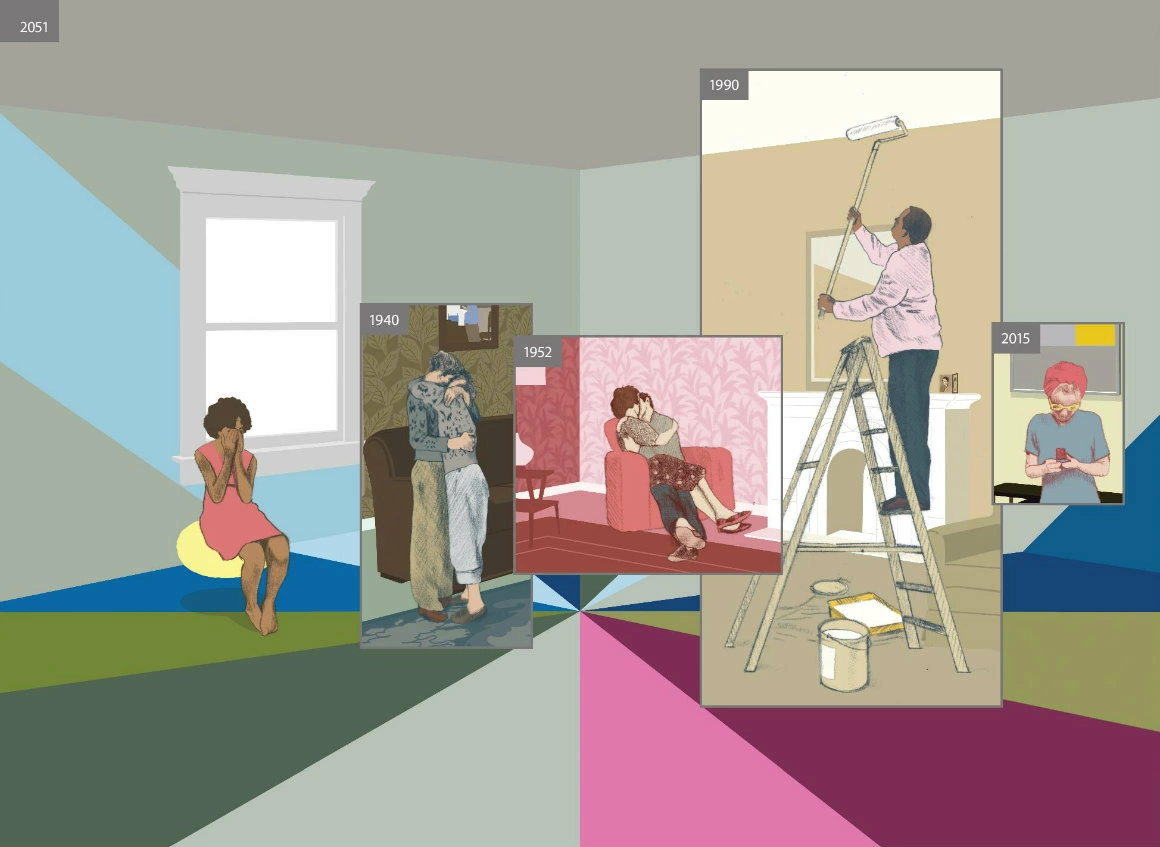 Romanul grafic la care Richard McGuire a lucrat 15 ani și care, fără doar și poate, e unul din cele mai discutate, lăudate și premiate din specia lui, a apărut de curând la Editura ART. E una din mai-mult-decât-cărțile alea în care obișnuințele de cititor cuminte se dizolvă: deschizi coperta, răsfoiești câteva pagini și nimic din așteptările tocite de atâtea povești lineare nu pare să fie de folos. Fiindcă Aici ai nevoie (și) de alte instrumente (interioare) de orientare. Mai jos, vă puteți face o idee despre cum face autorul american să deruleze timpul ca pe o bandă încâlcită.