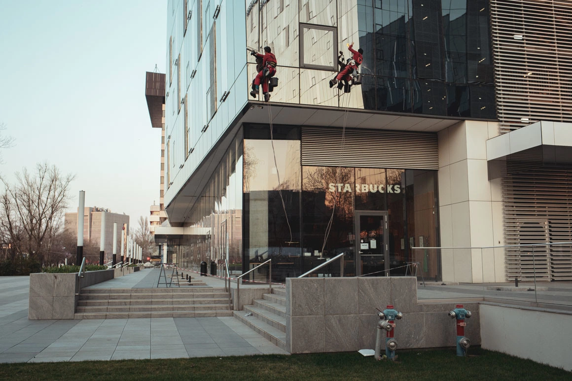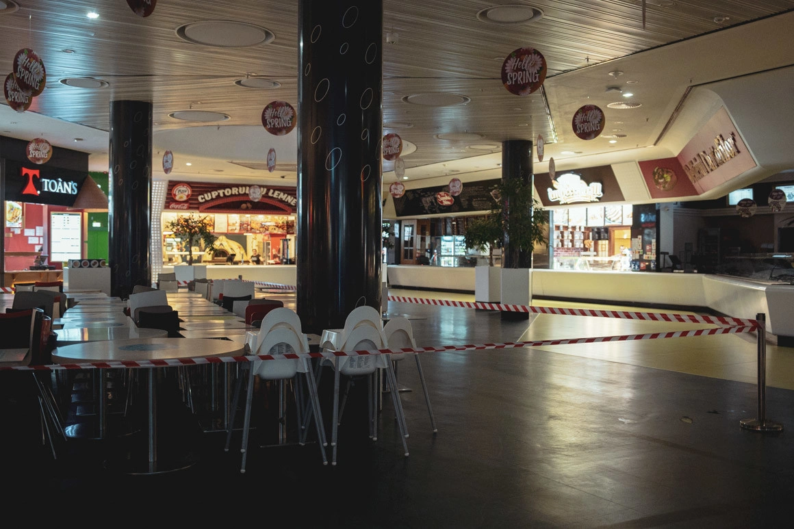 Intru în mall Promenada. Toate magazinele sunt deschise și, în afară de paznici și nelipsiții curieri de la Glovo, care mișună prin food court și pe care i-am văzut prin tot orașul, nu e nimeni.