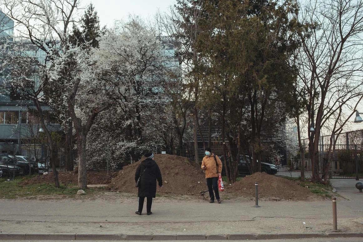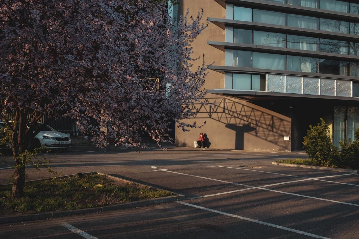 În Pipera se revarsă în stațiile de tramvai și autobuz muncitorii care lucrează la construcția noilor clădiri de birouri. Un bărbat dintr-un grup care așteaptă tramvaiul 16 scoate dintr-o sacoșă câteva sticle de bere. Mă apropii, cer voie să le fac un portret, glumim ca și când n-ar veni sfârșitul lumii, e plăcut. În fața stației de metrou, patru oameni vând lalele, 25 de fire la 10 lei, preț de pandemie în luna florilor. O femeie se împiedică de un fier ieșit din șina tramvaiului, cade pe burtă și își sparge telefonul. Paznicul de la clădirea de lângă zice „corona, corona, da’ noi tot în epoca de piatră am rămas”, iar colega răspunde „nu, uite, epoca de fier”.