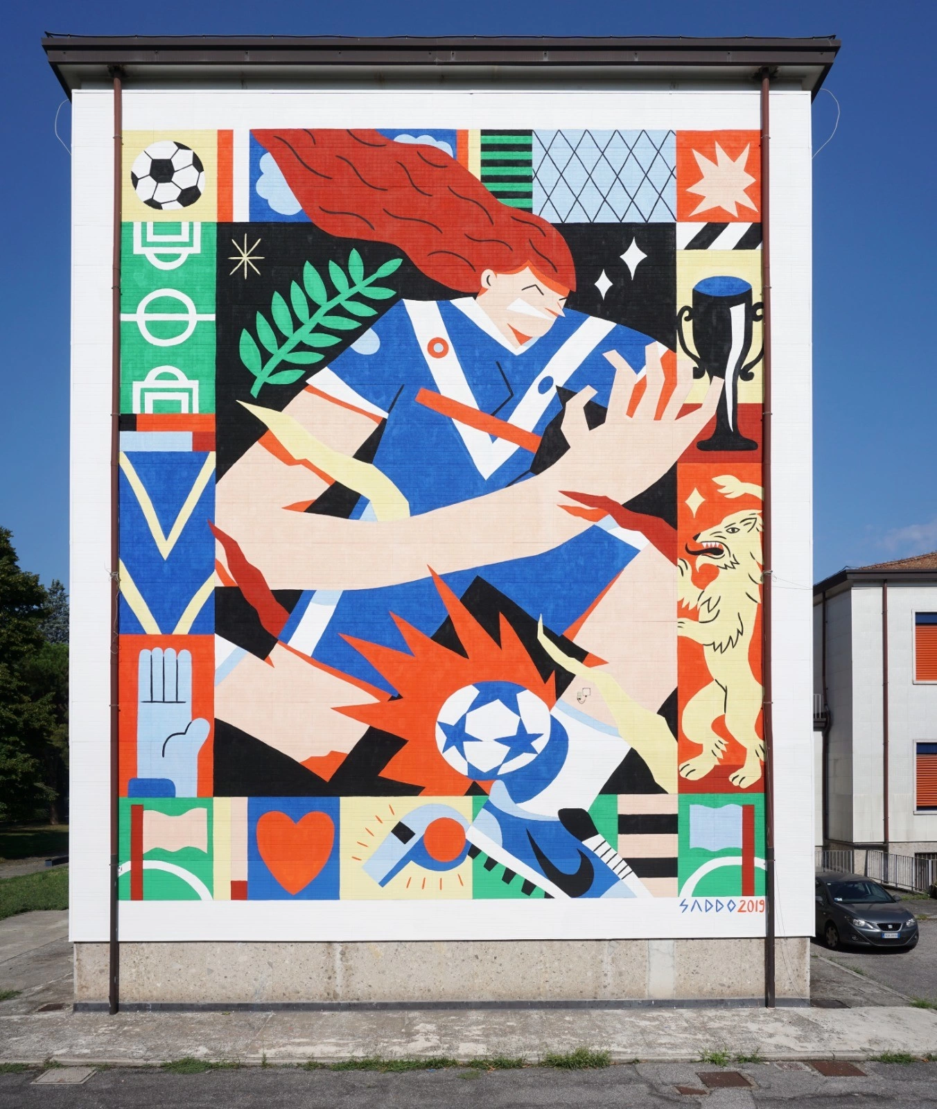 Vara asta Saddo a fost la Brescia, unde a pictat un mural cu o fotbalistă din echipa feminină locală pe o clădire dintr-un cartier mărginaș, Lamarmora. „A fost super mișto pentru comunitatea locală, pentru copiii de la școală, pentru bătrânii de la cămin, să primească un pic de atenție, vibrații bune și un sentiment că nu sunt ignorați sau marginalizati, așa, ca zonă sau importanță în cadrul orașului”, mi-a scris Saddo într-un mail.