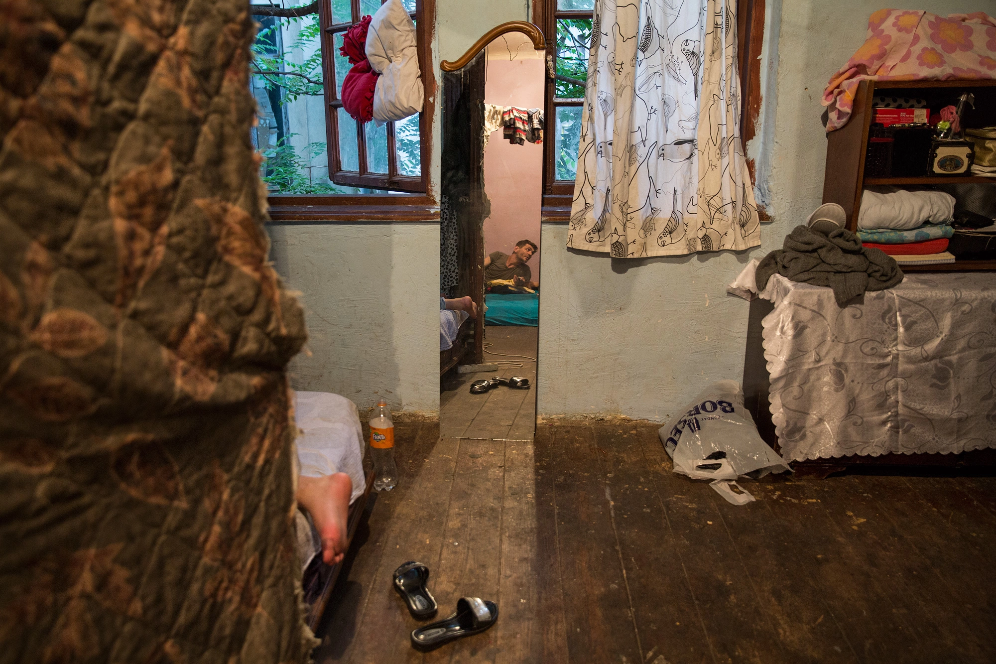 Ovidiu, om bun la toate. Stă alături de încă 16 familii într-o casă părăsită de pe malul Dâmboviței, din zona Kogălniceanu.