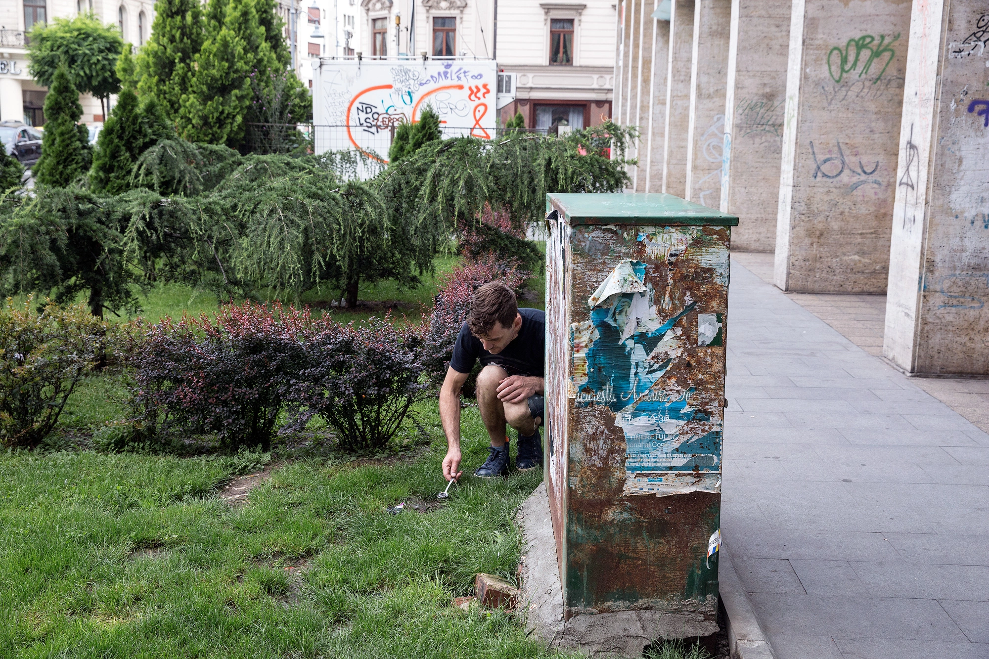 Dimineața la 7, doamna Florica, florareasă la coloanele de la Universitate de 35 de ani, vine la muncă. Nu mai poate căra, așa că Ovidiu trebuie să o ajute să-și monteze standul, să-i care apă, să măture și să-i aranjeze gălețile cu flori. Apoi pleacă și vine seara pentru operațiunea inversă.