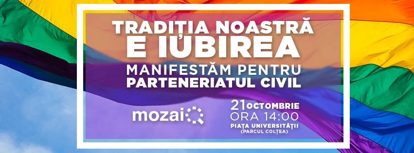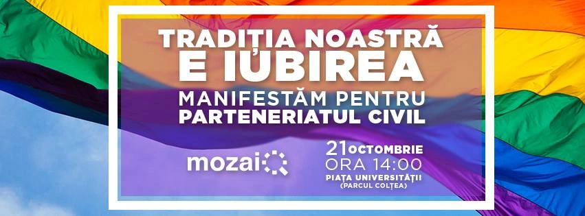 E toamnă, se numără marșurile. Pentru mine e marșul și săptămâna: după cel pentru siguranța femeilor de weekend-ul trecut, sâmbăta asta ieșim pentru legalizarea parteneriatului civil. Pentru că persoanele LGBT sunt plătitoare de taxe ca toți ceilalți și merită drepturi egale. Pentru că dacă e un slogan în care cred de când mă știu e „None of us are free until all of us are equal.” Pentru că deși homosexualitatea nu mai e pedepsită prin lege de 16 ani în România, vreo 400.000 de cupluri de români n-au, în continuare, aceleași drepturi ca celelalte. Pentru că tu, dacă ești hetero și căsătorit, ai voie să-ți vizitezi soțul/soția bolnavă și internată în spital. Pentru că dacă soțul sau soția ta ar muri, n-ai risca să rămâi pe străzi. Și dintr-o mie de alte motive, care-ar trebui să ne facem să înțelegem că persoanele LGBT au nevoie de egalitate.