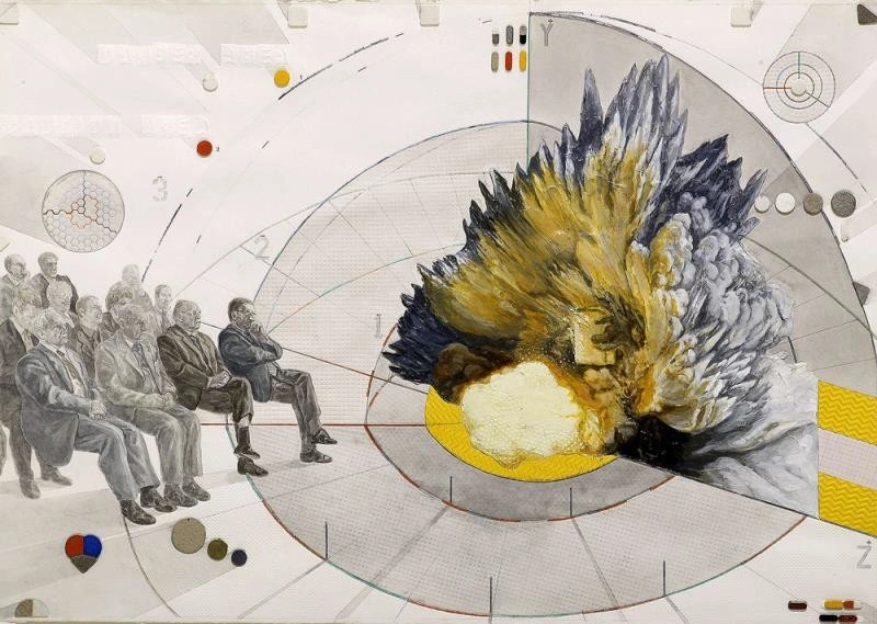 Dacă nu-i știți lucrările lui Ștefan Ungureanu, faceți-vă timp pentru ele și mergeți să vedeți expoziția curatoriată de Erwin Kessler. Asta fiindcă Ungureanu (34 de ani) e unul dintre artiștii care construiesc o lume de sine stătătoare. În cazul de față, e un soi de distopie cu legile și obsesiile ei, care împrumută ceva din imaginarul științific și tonul didactic al manualelor și planșelor explicative, o lume care-o reflectă pe cea unde trăim în momentul ăsta și în același timp deschide multe alte lumi posibile. Dacă vă e oarecum teamă să vă apropiați de arta contemporană, tablourile lui Ungureanu sunt unealta perfectă cu care să dărâmați prejudecata asta - sunt picturi figurative, care adună laolaltă bucăți din imaginarul nostru și care, odată ajuns în fața lor, te iau pe sus și te duc în cu totul alte spații mentale.