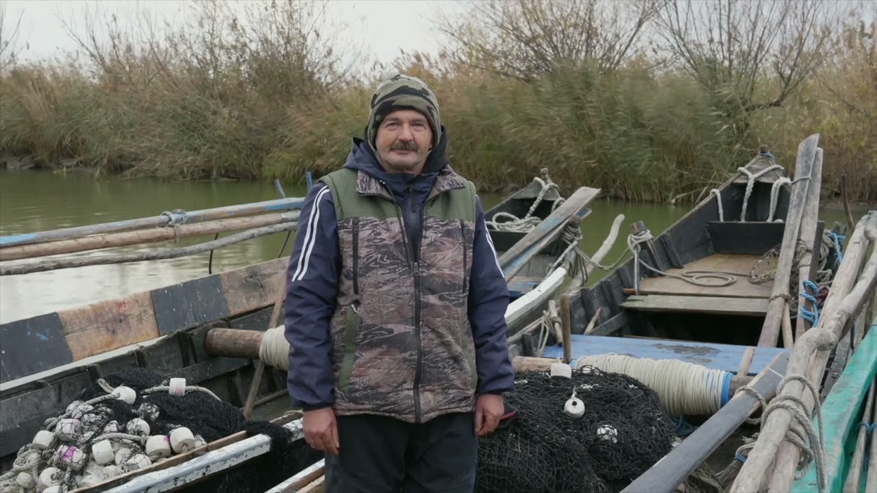 „Vremea s-a schimbat foarte mult”, continuă el, „înainte erau geruri puternice, îngheța două-trei luni balta. Acum, după 20-30 de ani, nu mai avem iarnă. Geruri nu mai avem, dar sunt furtunile astea foarte puternice. Nu ieșim la pescuit, ne distrug sculele. Era mai bine dacă era ger, se reproducea și peștele mai bine.”