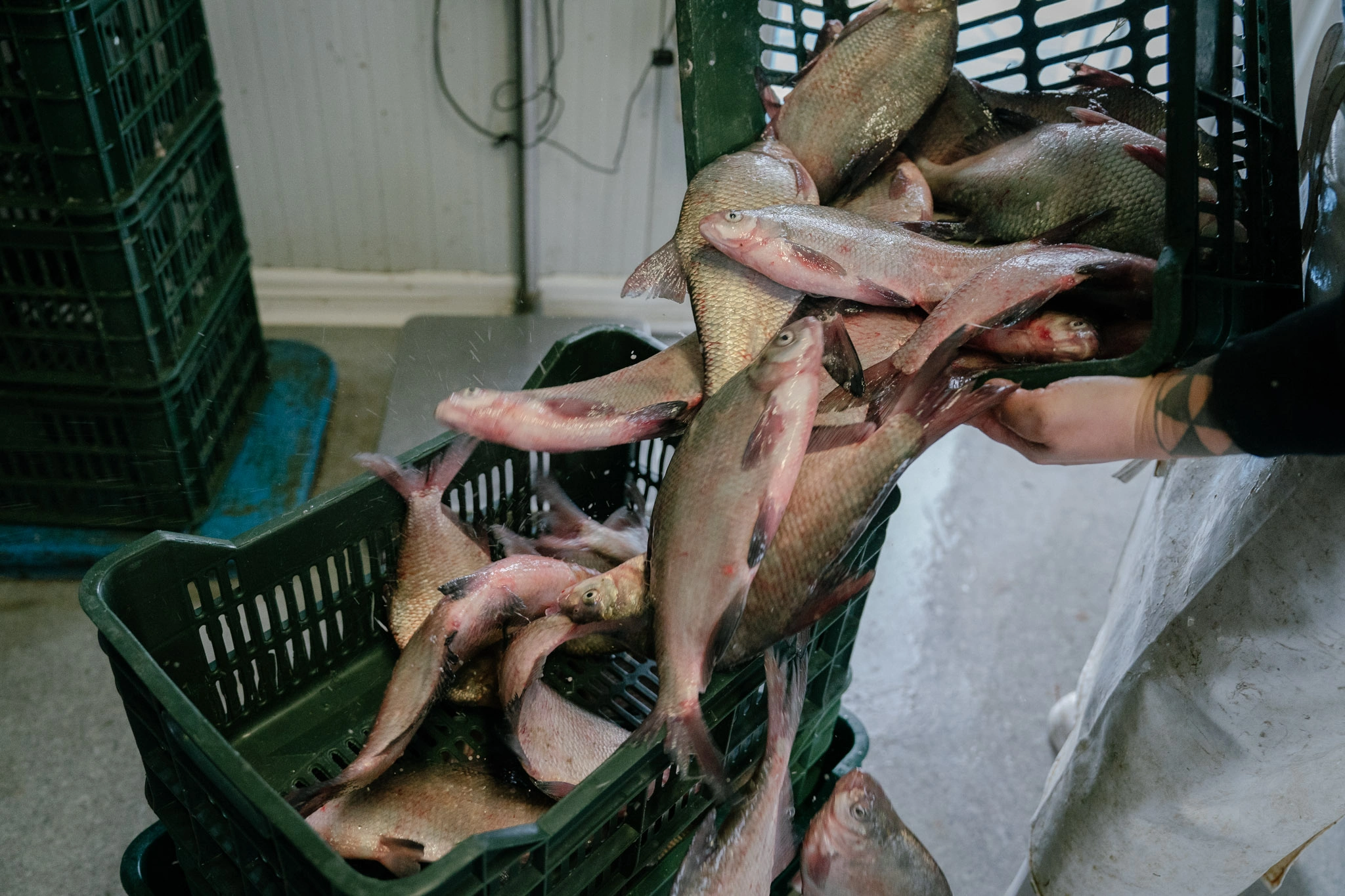 La intrarea în containerul din port ce servește ca punct de descărcare și centru de primă vânzare, deși de așteptat, mirosul de pește tot te lovește din plin. Pe o tejghea folosită pe post de birou improvizat, Cătălin Balaban verifică concentrat niște hârtii. Lădițe pline cu pești de diferite dimensiuni așteaptă să fie încărcate în duba parcată lângă ușa dinspre mal. Unii dintre ei încă mișcă, ridicând capul sau coada în zvâcniri bruște. Un crap mare tronează între ei, ocupând propria lădiță.