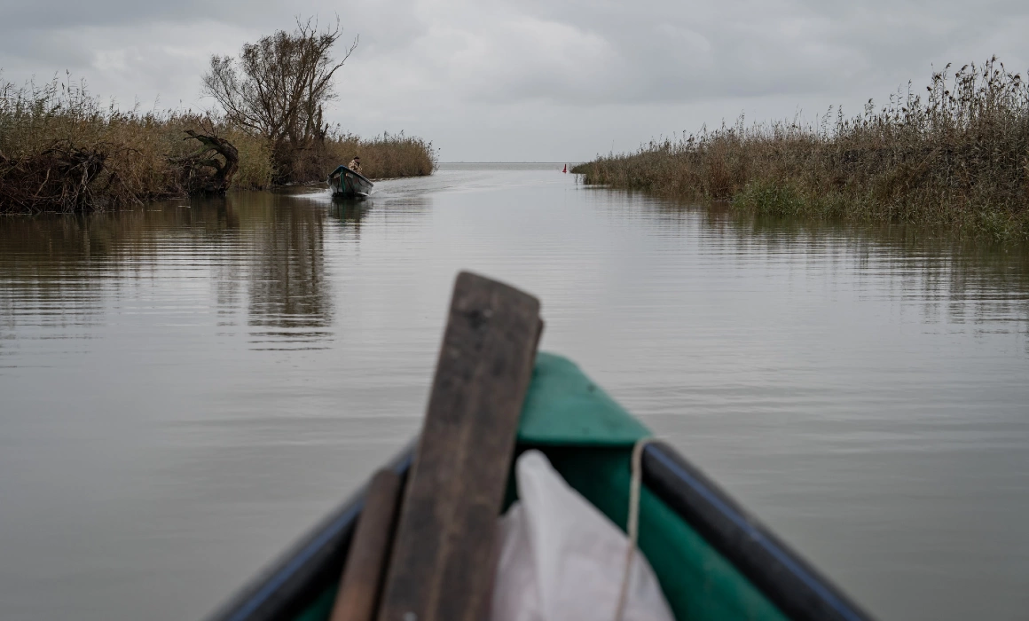 Siluete de bărci priponite la mal se reflectă în luciul calm al apei. Doar picăturile răzlețe de ploaie sparg pe alocuri oglinda perfectă a acesteia. Și barca ce înaintează încet pe canal, pe lângă stufărișul gălbejit. În calea ei, un pelican își desface aripile și, nevoit să se mute, își ia zborul. Ceva mai departe de port, stufărișul dispare și, odată cu el, și liniștea apei. O înlocuiesc valuri ce lovesc din ce în ce mai puternic în barcă. Azi nu e de ieșit la năvod.
