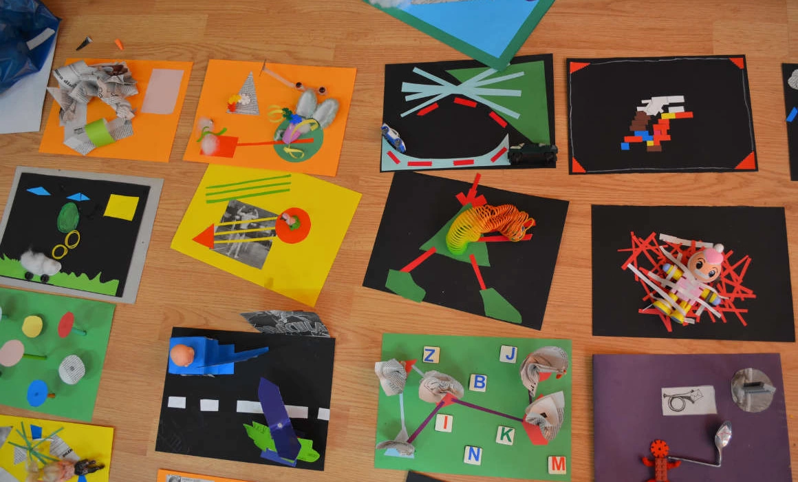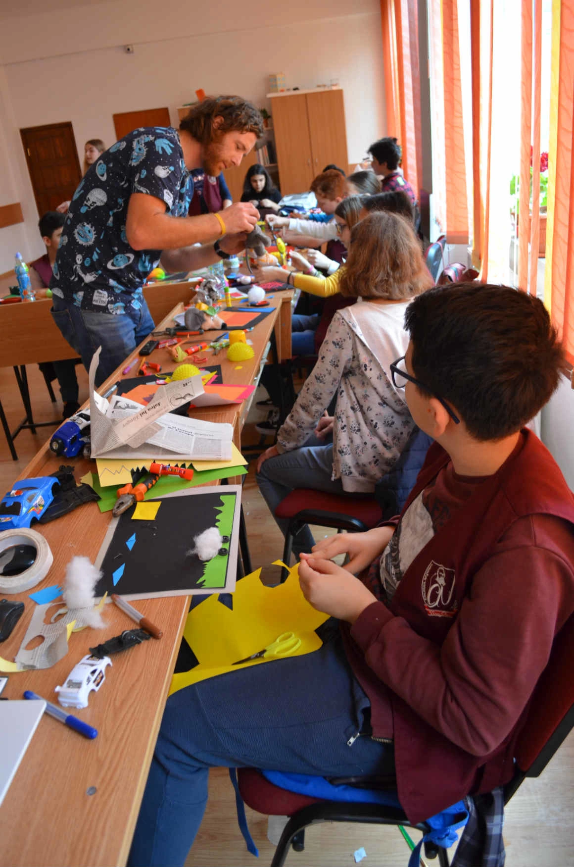 Mai întâi, Ștefan a încercat să găsească, împreună cu elevii, dozele potrivite de teorie și exercițiu, ca la Școala de la Weimar. „Nu prea aveau răbdare să asculte teoria, o reluam pe parcurs”, îmi explică el. „Un profesor trebuie să ia fiecare elev în parte și să-l aducă într-un stadiu de interes, să nu-l lase până nu înțelege tot”. Așa că le-a explicat regulile și tehnicile de bază, apoi au trecut la lucru. „Echilibrul ar trebui să existe în tot ce facem. În artă, echilibrul e între mesaj, formă, materiale.” I-a rugat să aducă de acasă obiecte care nu mai au nicio utilitate pentru ei și stau să fie aruncate. Apoi le-a pus în mână patente, sârmă, ață și lipici cu care au făcut colaje 2D, 3D și instalații.