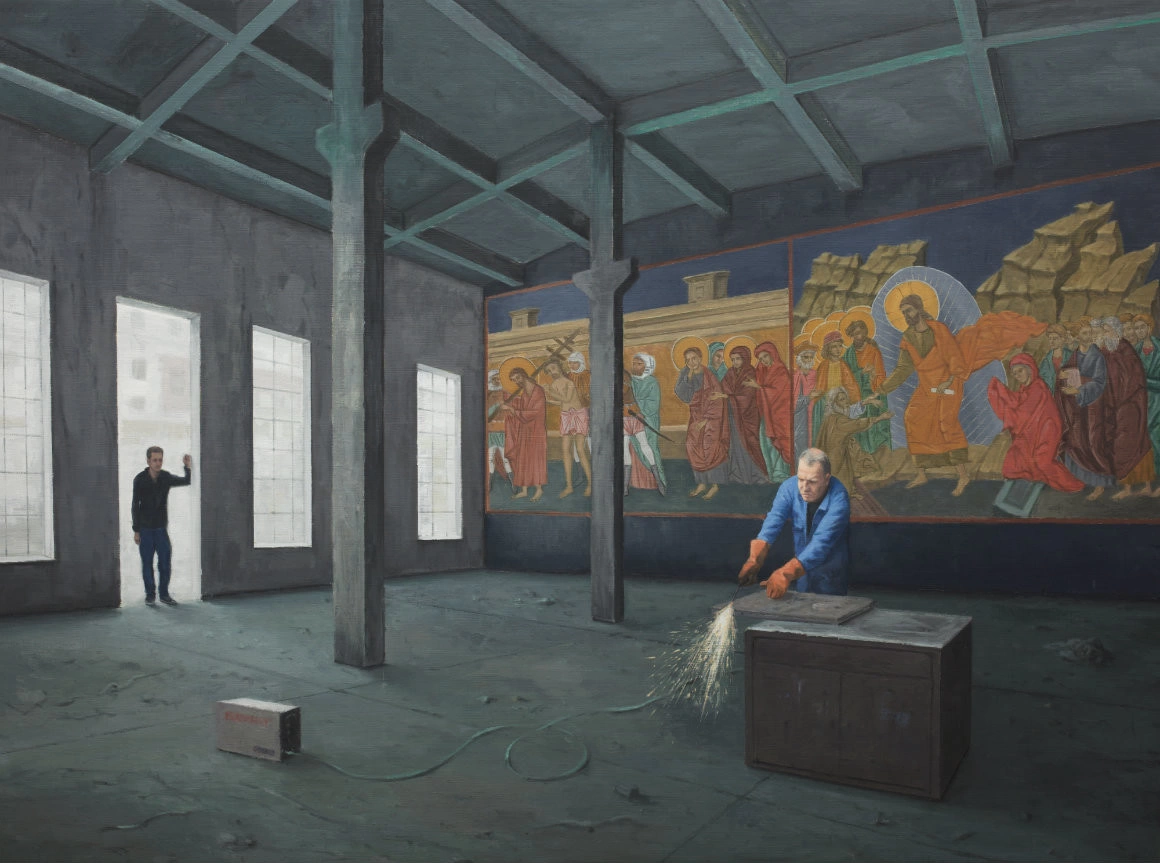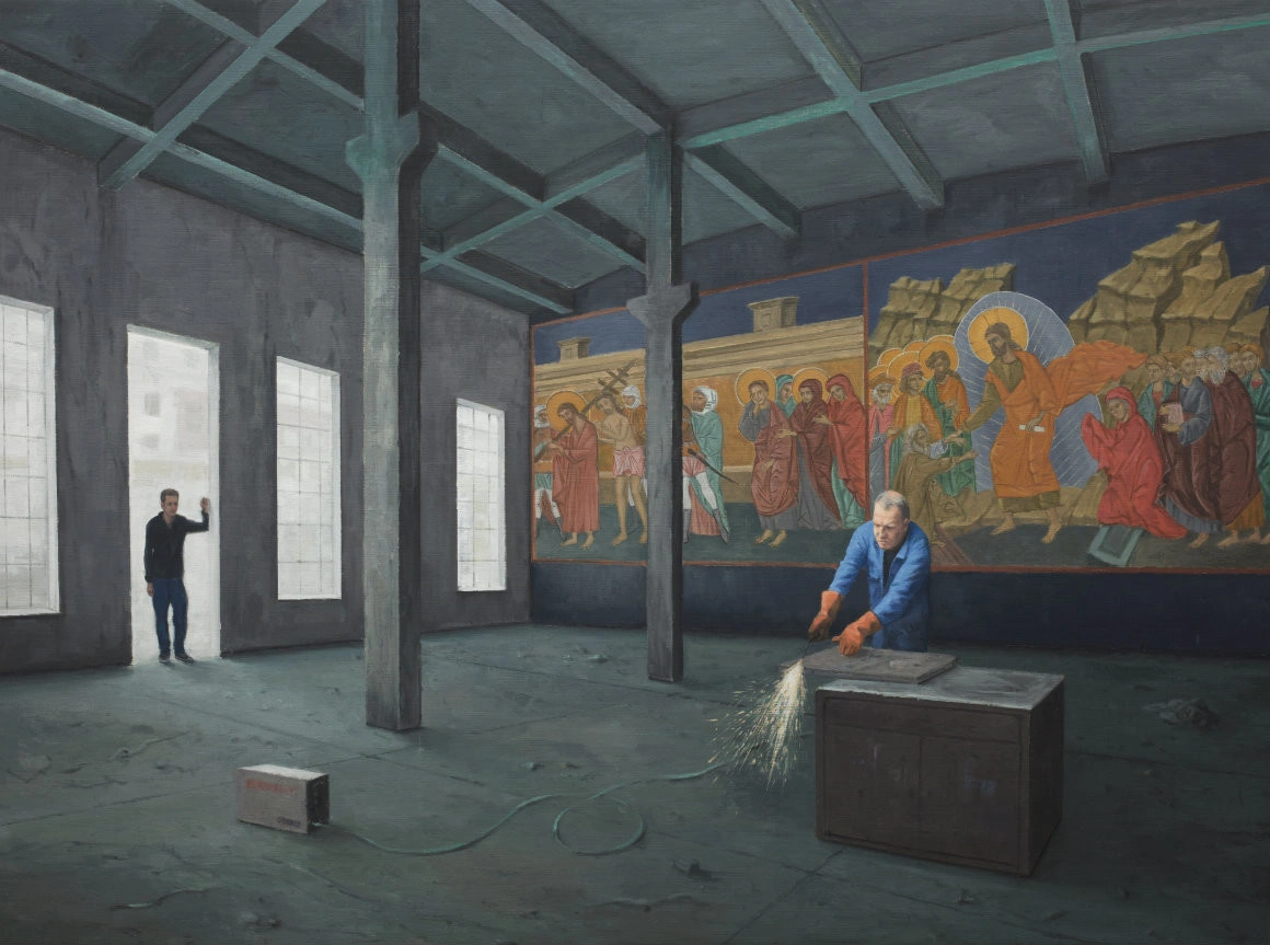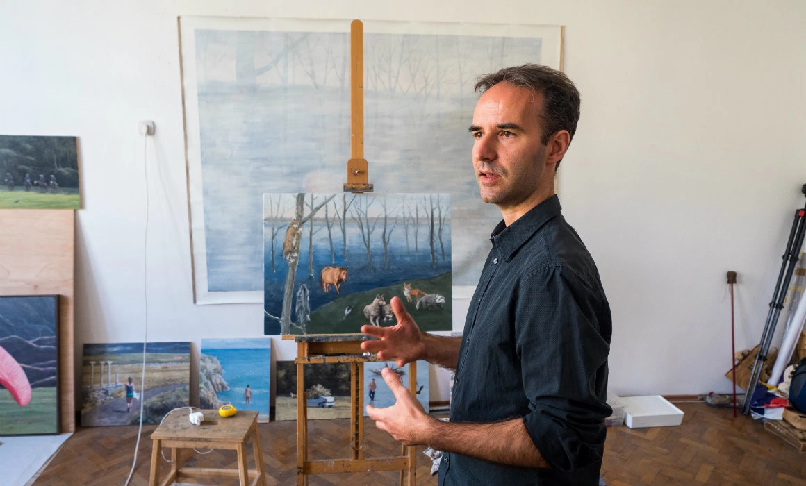 Într-un fel, este mai interesant pentru că nu am o rețetă de execuție. Fiecare pictură este un semn de întrebare pentru mine, nu știu cum să o rezolv inițial și trebuie să caut soluții, ceea ce face actul destul de interesant, provocator. Ideal ar fi să te pui la lucru și să faci abstracție că ești pictor. Desigur, vin anumite mecanisme vizuale care te îndrumă să abordezi o anumită manieră, dar uneori este bine să îți dai peste mână și să încerci să ai o privire fără prejudecăți, fără clișee. E greu să ajungi acolo.