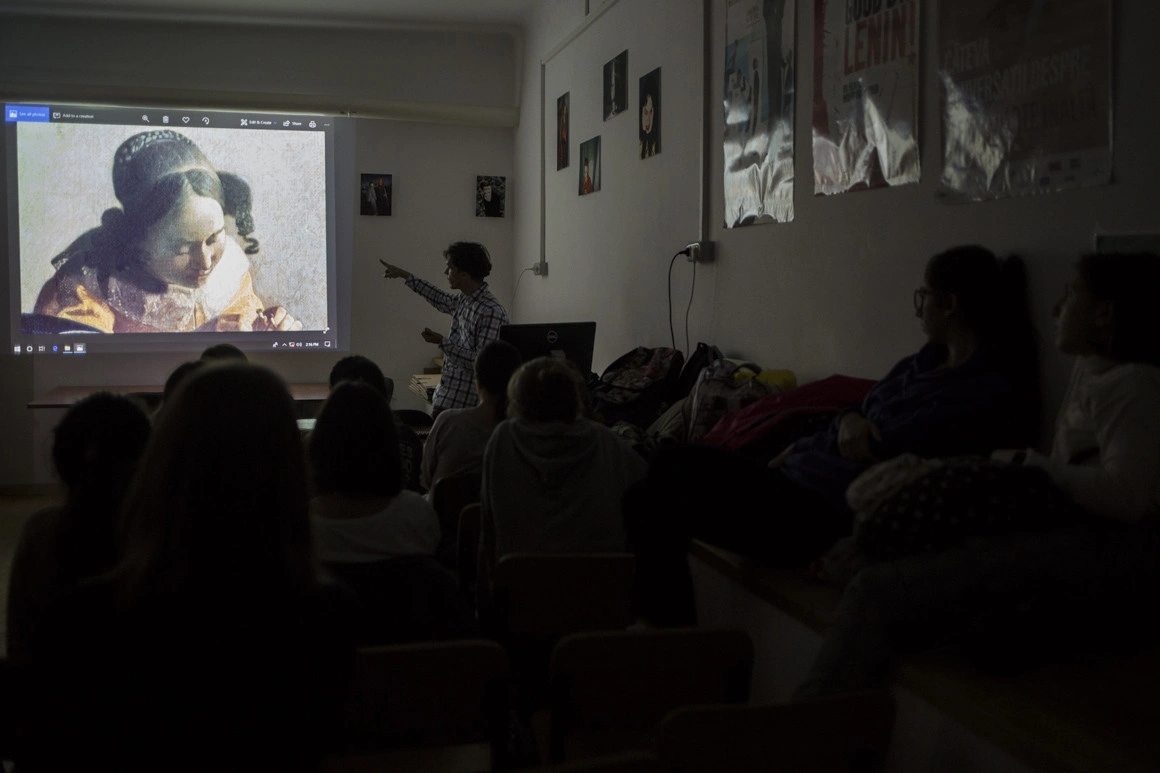 Pisoarul întors al lui Duchamp i-a încuiat un pic pe liceenii de-a zecea. Încet-încet, discuția s-a adâncit și s-a ajuns la teme mari: contează, în artă, frumosul? Ce-ar trebui să ne intereseze mai mult, din punct de vedere artistic: munca fizică sau cea mentală? Poate un obiect cotidian să devină artă? Fântâna lui Duchamp și o sculptură din Antichitatea greacă au fost proiectate în paralel. Sibi ne-a explicat că, deși avem impresia că înțelegem mai bine lucrările antice, arta modernă e de fapt mult mai aproape de noi.