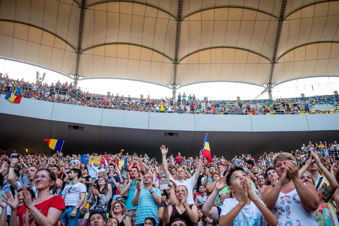 Apare, în cele din urmă, Simona, într-o explozie de urale. Tot stadionul se ridică în picioare s-o întâmpine și rămân ridicați și pentru intonarea imnului. Omologii lui Beyoncé la București sunt Monica Anghel și Marcel Pavel. Simona știe versurile, după cum vedem cu toții pe ecranele de deasupra stadionului. Iar apoi, detonează cealaltă explozie de emoție a serii.