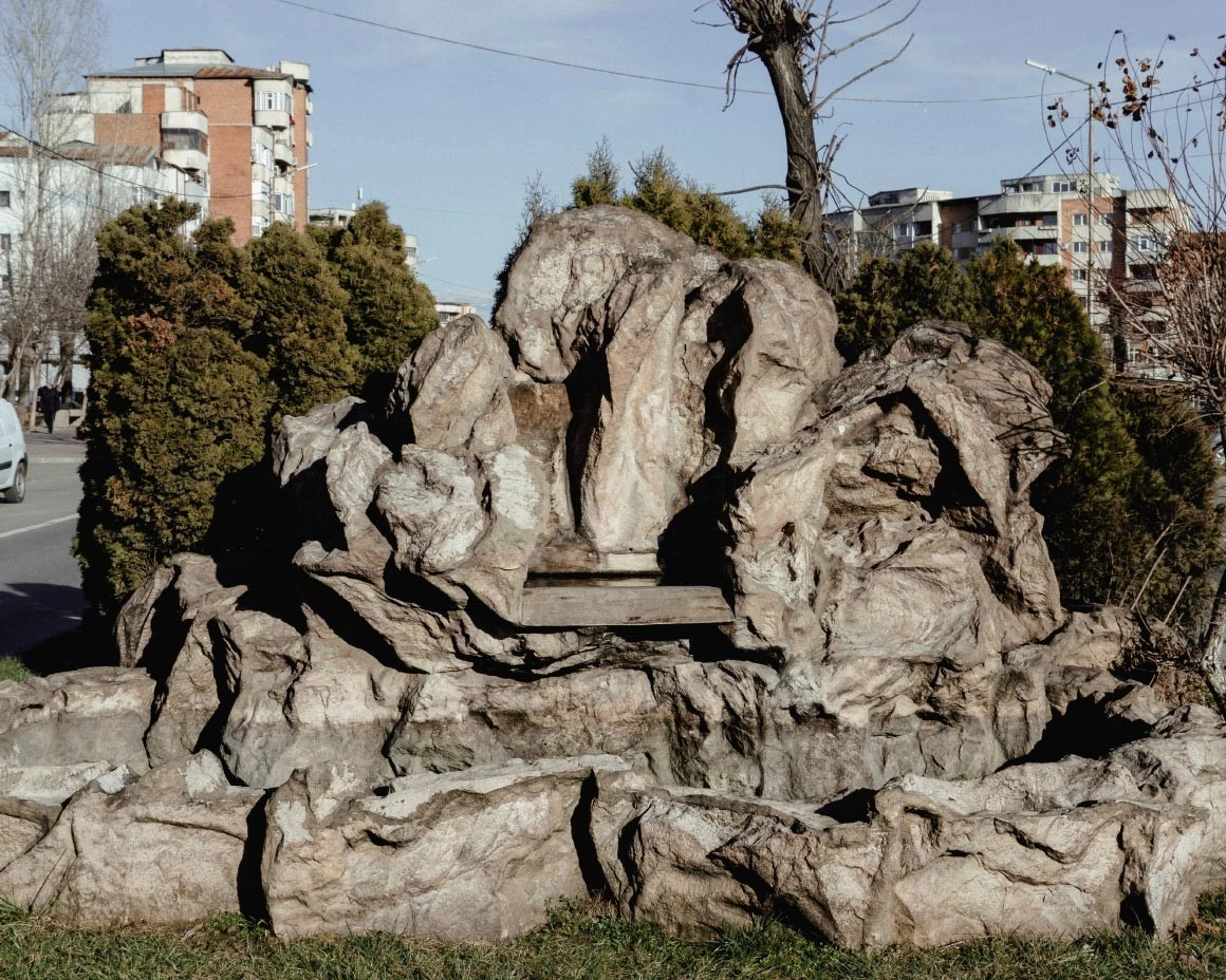 Odată ce treci de muzeu și urci străzile în pantă, peisajul se schimbă: o îngrămădeală de farmacii, bănci, șaormerii, panouri cu șuncă Sissi, pariuri sportive, seconduri și blocuri cât vezi cu ochii. Ca într-o mai veche fantezie USL-istă, sediul PSD dă ușă în ușă cu sediul PNL. Un brad rămas de la sărbători, cenușiu și jigărit, e înfipt în mijlocul unui sens giratoriu. Combinația de soare și aer prăfos are ceva anxios și deja mi-e dor de tihna din centrul vechi.