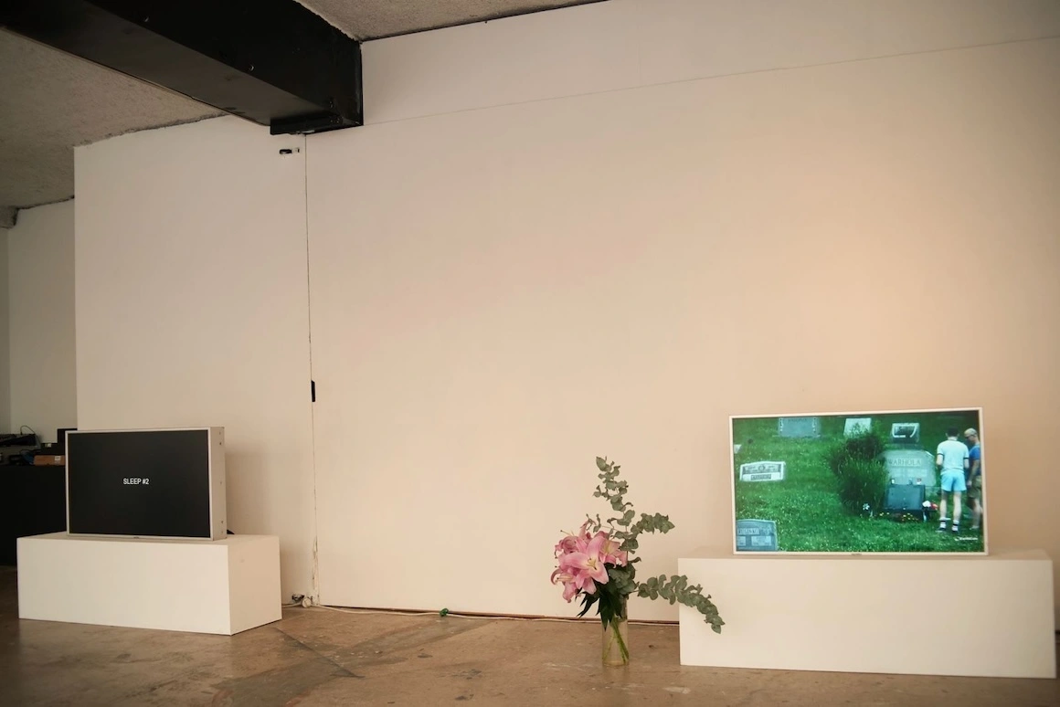 Poanta lui Sleep #2 funcționează pe mai multe niveluri. Întâi de toate pentru că Warhol, cel mai scump artist al secolului XX – vedetă a caselor de licitații și icon pop pretutindeni recognoscibil –, se vede aici „îmbălsămat” de tehnologia precară a unei camere CCTV de rezoluție joasă, un mormânt audiovizual dintre cele mai rudimentare. Nici că se putea mai bine pentru Warhol-cineastul mereu neînțeles, pe vecie irecuperabil. De altfel, în versiunea ei „spațializată”, spartă în patru ecrane amplasate în galerie, instalația a reprodus aspectul de piatră funerară și le-a impus privitorilor un raport specific al privirii: față de ecranul cinematografului, pentru a descoperi ecranele expoziției – cu acest punct de vedere unic din interiorul cimitirului – trebuia să te uiți în jos. Nici nu e de mirare că, în cadrul retrospectivei, una dintre seri a pus în dialog Sleep #2 și The Shrouds (2024), filmul lui David Cronenberg despre acest antreprenor obsedat să privească trupul soției sale moarte și dincolo de mormânt.