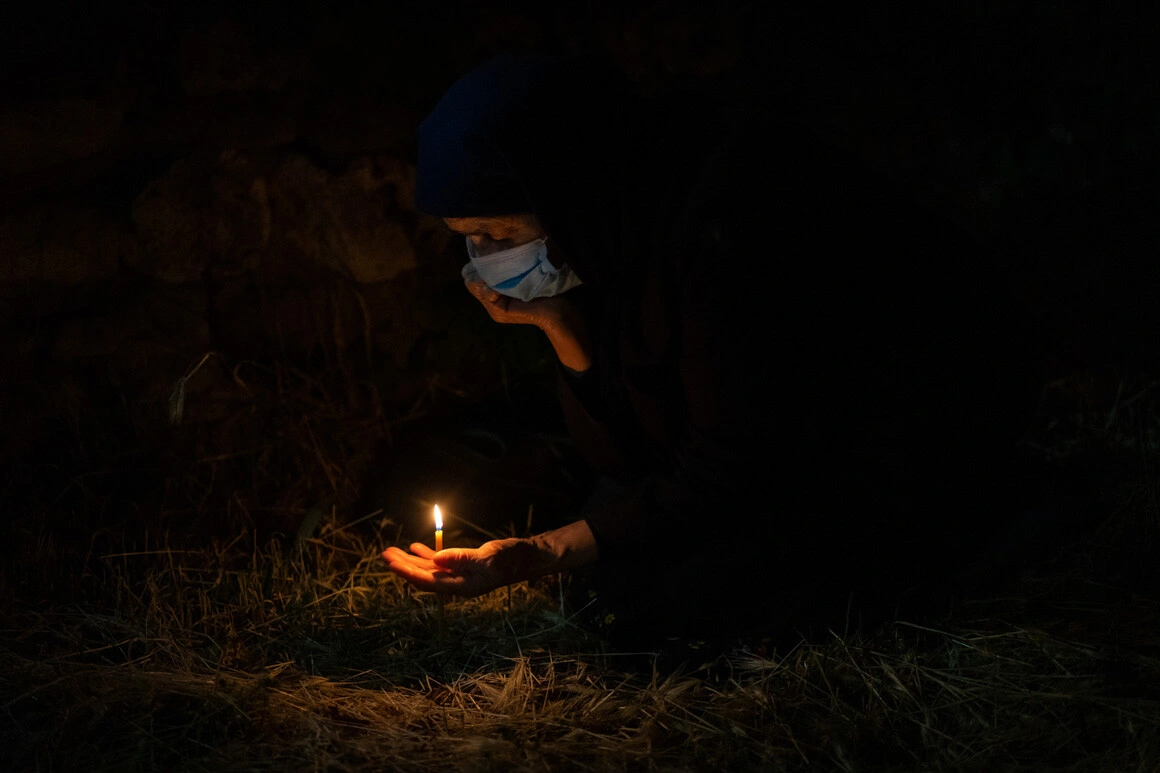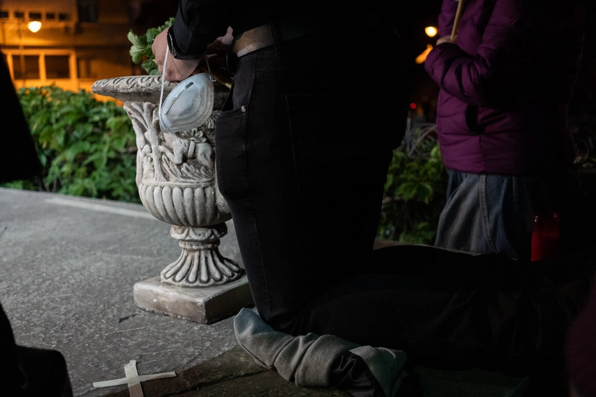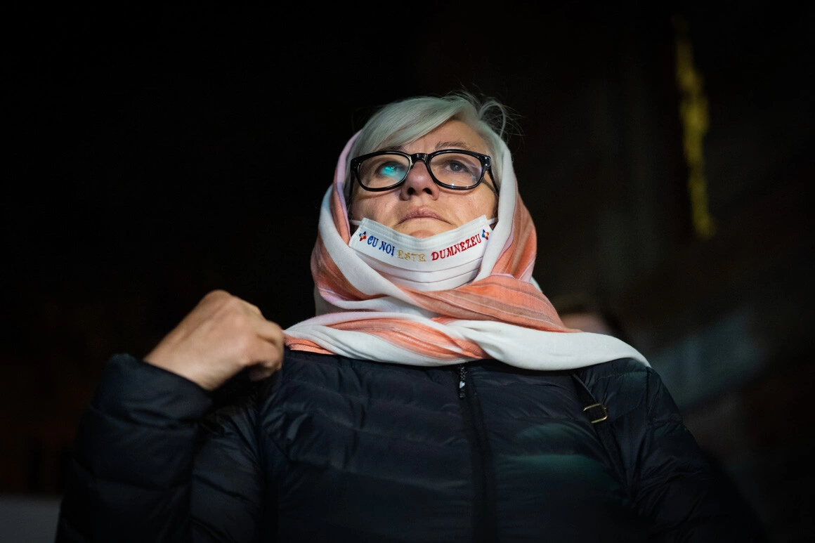 La intrarea în catedrală, ceva mai departe de haosul mulțimii, ușa veche din lemn masiv se deschide și din biserică iese un medic. Poartă costum medical, albastru, halat alb, subțire, peste care un halat gros, de spital. Își face cruce, vede camerele foto, își pune repede masca de protecție și pleacă. Doamne ajută!