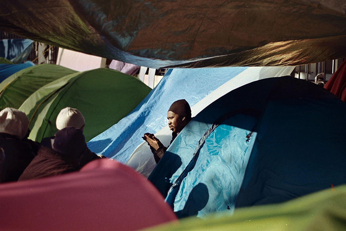 Un tânăr care te privește în ochi. Un bărbat care tunde un alt bărbat. Bărbați tineri la coadă. Un semiprofil care iese dintr-un cort. Oameni care dorm în stradă. Au fost toți fotografiați în locuințele lor temporare din tabăra de refugiați Stalingrad din Paris, de Deborah Feldman (26), o artistă româncă.