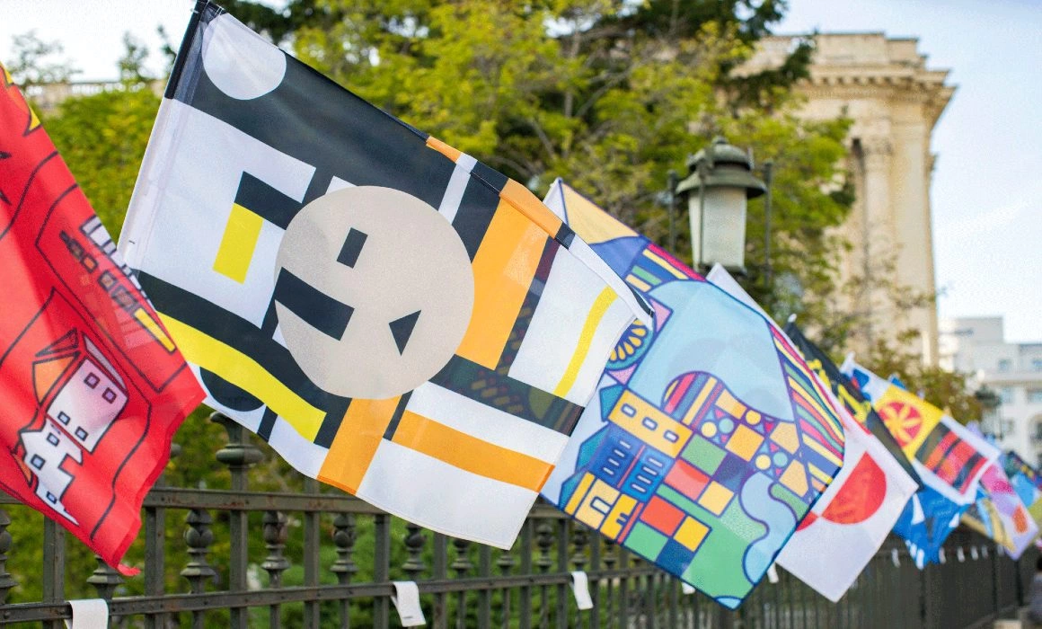 Anul ăsta, cu ocazia Romanian Design Week, asociația Local Design Circle a pus la cale RO42 — Forme locale, o expoziție cu 42 de steaguri ale județelor, realizate de designeri sau de artiști cu experiență, dar și de studenți la arte. Unele steaguri au pornit de la elementele deja existente în imaginea fiecărui județ, altele au propus identități cu totul noi. „A fost nevoie de realizarea unui index cu poziționarea pe hartă a designerilor sau artiștilor locali și verificarea disponibilității acestora pentru participarea în proiect,” explică Artemisa Pascu, de la Local Circle Design. „Acolo unde nu a fost posibilă asocierea unui județ cu un participant care să fie chiar din acel județ, le-am scris celor care s-au născut, dar au plecat din județul natal, care s-au mutat ulterior în județul respectiv sau celor care au o legătură cu acel județ.” Lucrările sunt un pretext bun de a rostogoli în discuția publică subiectul identității locurilor unde trăim și al formelor vizuale pe care le ia.