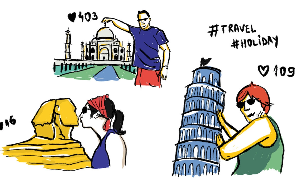 În vreme ce selfie stick-urile au devenit nelipsite din bagajele turiștilor din toată lumea, pe Instagram au fost urcate până acum peste 350 de milioane cu #selfie și mai mult de 299 de milioane poze cu #travel. Și nici nu adăugăm la calcul fotografiile cu cocktail-uri și picioare lângă piscină, pașapoarte în aeroport sau remake-uri după Follow me to - știi tu, fotograful tras de mânecă de iubita lui călăuză, prin toată lumea.
