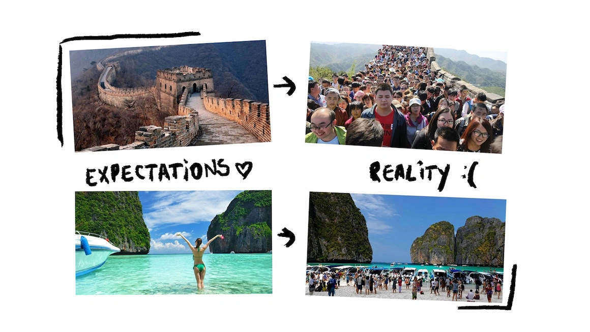 Poate de asta simțim nevoia să fim condescendenți față de alți turiști. E imposibil, spre exemplu, să nu ne uităm la fotografiile lui Martin Parr cu detașare și cu un simț de superioritate, pentru că ilustrează exact stereotipurile noastre despre turiștii de masă, care pare că au toți aceleași reacții și pleacă acasă cu aceleași poze. Turiștii urmează un ghid cu steguleț și merg în grupuri spre hotel. În vreme ce noi, călătorii, căutăm pe cont propriu experiențe „autentice” pe TripAdvisor și stăm în Airbnb-uri, care ne promit să trăim „ca niște localnici”. Asta pentru că, în timp ce suntem confruntați cu o mulțime de oameni, spun psihosociologii, tindem să avem o iluzie de superioritate față de cei din jur. Credem că suntem mai inteligenți și mai buni decât media, vrem să fim „altfel”. Și așa ajungem să ironizăm clișeele din fotografiile altor turiști.