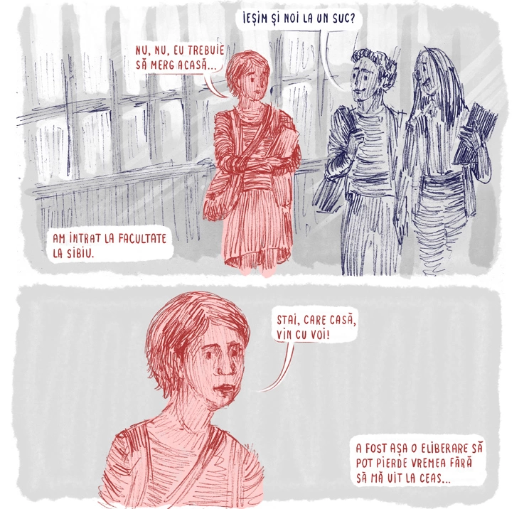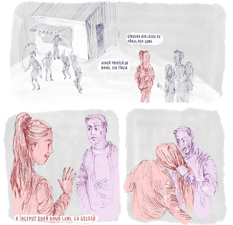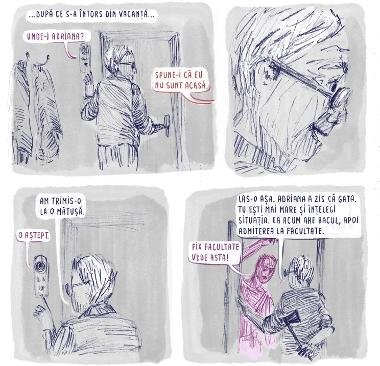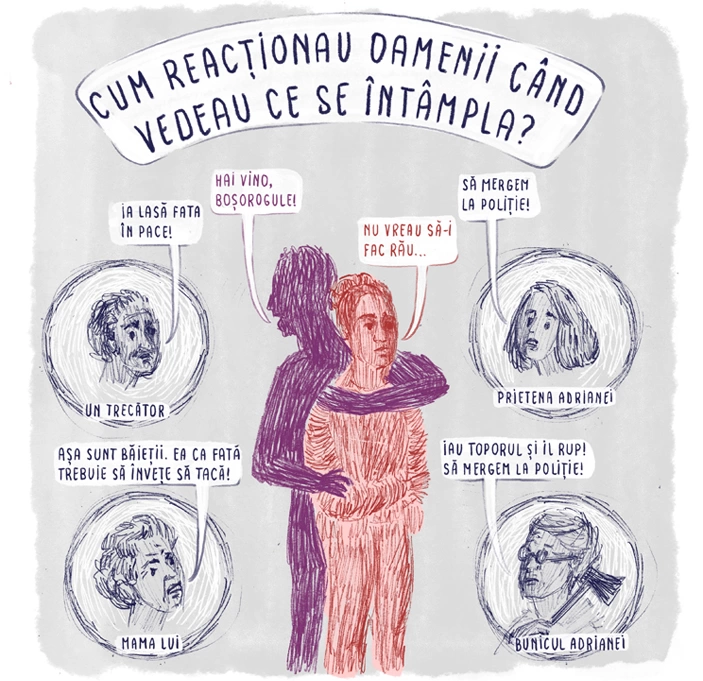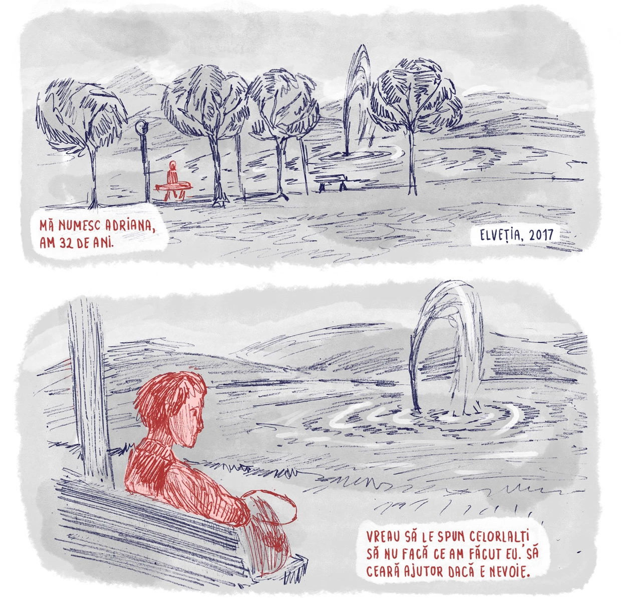 Asta e povestea Adrianei, unul dintre personajele principale din documentar. E ilustrată de Roma Gavrilă.