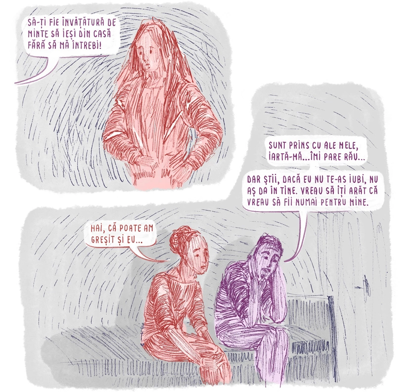 În mai anul ăsta, am câștigat o bursă de jurnalism ca să documentăm violența în cuplurile de adolescenți. Aveam multe contacte printre adolescenți, povești puternice găsite în pre-documentare și credeam că va fi relativ simplu. Dar poveștile s-au evaporat foarte repede, oamenii nu au mai vrut să vorbească și ni s-a cam tras covorul de sub picioare. Ne-am trezit în mijlocul unei camere goale. Ce facem de aici?