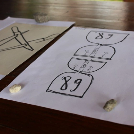 Nu știu cum ar arăta o școală de arte imaginată de Dan Perjovschi, și sunt convinsă că i-ar displăcea cu totul ideea unei instituții, care din start presupune reguli; adică supunere. „Nu mă interesează ierarhiile, cel mai bun, olimpicul. Desenează mai bine cei care n-au învățat să deseneze,” spune Perjovschi într-o dimineață, pe terasa dintre munți, unde s-a întâmplat Minitremu Art Camp 2. „Regulile sunt o închisoare. În momentul în care cunoști ceva foarte bine, ești prizonier”. Într-o țară care are cultul olimpicilor, să spui că mantra performanței trebuie dată pe silent, e un tabu. Tot un tabu e și să dai undă verde greșelii, s-o accepți ca pas necesar nu doar în making of-ul artei, ci și-n aparatul gândirii critice. Așa cum îmi spune și Mara Ungurean, elevă la arte în Arad, „cel mai mult îmi lipsește un profesor care să ne împingă să lucrăm cât mai mult, fără să ne fie frică să greșim. Există ideea asta că, dacă greșești, cine știe ce se întâmplă”. Dar pentru Perjovschi, tabuurile-s făcute ca să dai cu ele de pereți, fiindcă abia atunci arta iese din clopotul ei de sticlă.
