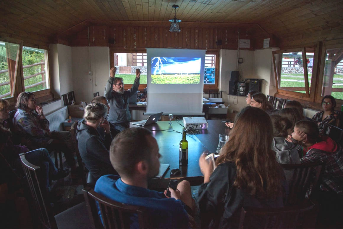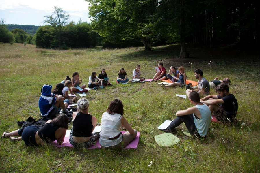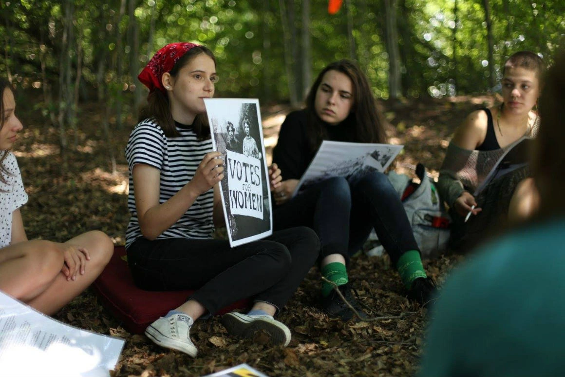 Stăm în cerc pe iarbă, cum s-a stat dintotdeauna, când oamenii aveau pe ordinea de zi vreo socoteală din viața tribului ori când dezbăteau de ce s-a supărat vreun zeu. În spatele nostru începe pădurea și se subțiază semnalul telefonului, dar nu prea ne mai pasă de asta. Bianca citește serioasă: „O stângă radicală trebuie să se împotrivească violenței fizice în conjuncție cu opoziția față de violența economică sau simbolică”. Bianca Iordache are 16 ani, locuiește la Târgu Ocna, face fotografie și ar vrea să lucreze într-o închisoare. Fragmentul pe care l-a citit, din „Manifestul pentru Ginecen”, scris de artista Alexandra Pirici și Raluca Voinea, curatoare și critic de artă, ne bagă imediat într-un pinball de idei: Ce-i stânga? E bine să fii radical? Ce-nseamnă violență economică și simbolică? Din fericire, nu trebuie să ne prefacem că știm răspunsurile, ca la școală, așa că încep să curgă întrebări, ipoteze, experiențe: „Stânga e cu comunismul, nu?”, „stânga e despre drepturi egale”, „romii sunt cetățeni second hand”, „și când îți cumperi haine poți să-ncurajezi violența economică”, „mulți folosesc violența psihologică - te critică pentru ceva ce nu poți schimba”, „la mine în școală am fost bullied mulți ani pentru că aveam note bune”, „cum putem schimba sistemul într-un mod non-violent?”, „trebuie să ne apărăm prin cunoaștere”. Și tot așa.