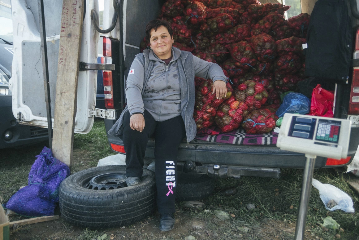 Mihaela Bâtea vine de șase ani la Negreni. Vinde legume pe care le produce împreună cu familia în Scărișoara Nouă din județul Satu Mare. Ea și soțul ei (nu a vrut să fie fotografiat pentru că „doamna e mai frumoasă”) lucrează în agricultură de când erau copii. Trăiesc din legumicultură și își vând produsele la târguri și în piața din Baia Mare, unde au un loc închiriat.
