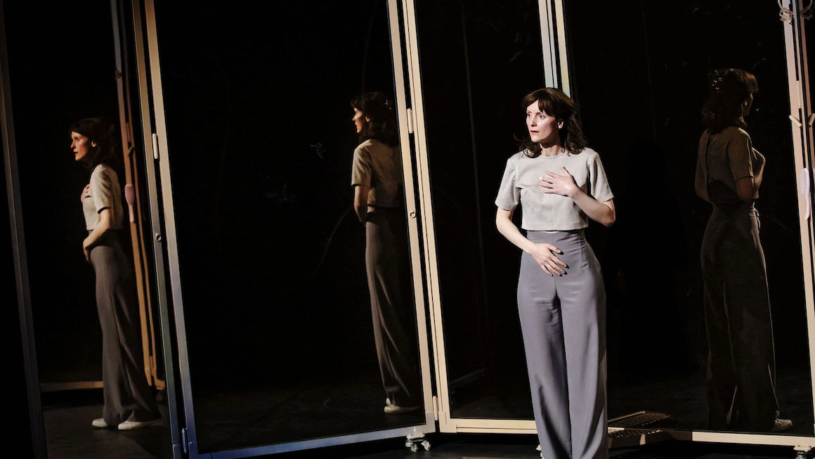 În spectacol, Veronika Bachfischer, care aduce un pic cu Isabelle Huppert, cu aerul ei tineresc dat de tunsoarea băiețească, navighează prin memoria lui Annie, al cărei portret din tinerețe este prins în decor, un paravan de oglinzi în care reflexia personajului accesează diferite planuri temporale și convenționale. Folosind o perucă, Annie matură plonjează în adolescența ei, iar cu o schimbare de ton, personajul Annie dispare, lăsând locul actriței Veronika Bachfischer, care își prezintă propriile ei confruntări cu misoginismul colegilor – aluzia lor la faptul că ea poartă pantaloni ca să-și ascundă picioarele creează un dublu disconfort, odată pentru că i se judecă corpul și a doua oară pentru că este ambiguă, poate fi interpretată fie ca un compliment, fie ca o critică. Accentul pe care îl pune aici actrița este pe existența, chiar la nivel nepericulos, a misoginismului și a tendinței de obiectifica femeile, mai ales că cele tinere, la început de carieră, sunt intimidate de acest tip de masculinitate care le evaluează corpul. Este o realitate contemporană în oglindă – de unde și decorul – cu povestea prezentată de Annie Ernaux și tot în oglindă este și reacția. Ca și personajul ei, actrița este paralizată de remarcă și nu reacționează.