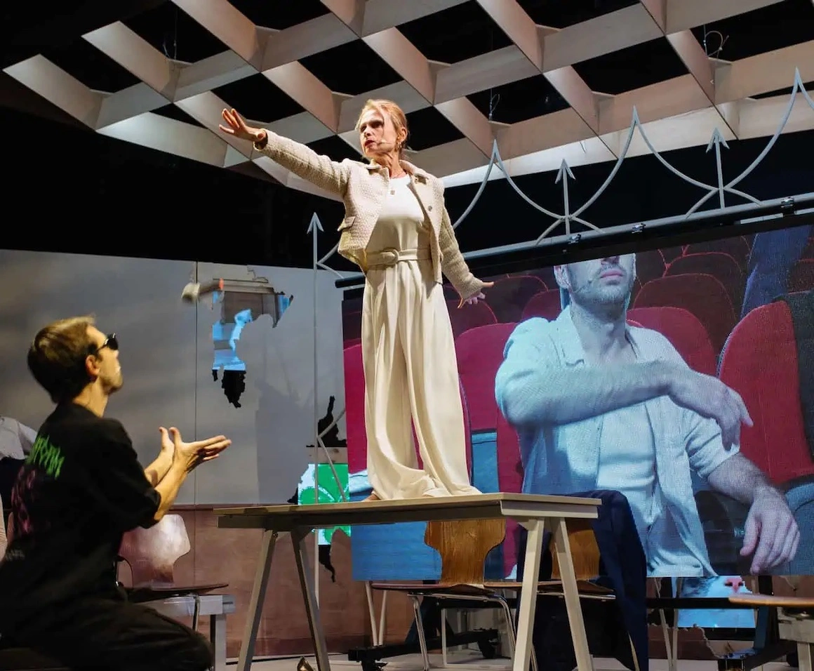 Spațiul de joc este scena, dar mai ales sala de spectacol, unde se află mereu actori, ba mai mult, acolo se stabilește planul de analiză a teatrului, acolo sunt dezbaterile, dezacordurile, negocierile de perspective și idei, printre spectatori, incluzându-i fără să îi implice direct, arătând însă mereu că temele (teatrul, școala) ne afectează pe toți și cu toții emitem idei asupra lor. Dar asta nu este singura miză a acestui format de spectacol nici convențional, nici neconvențional – jocul în sală nu e o noutate —, ci o anume aparență de nefinisat, de spectacol în lucru, de construcție teatrală în derulare, care ar putea fi actualizată / amendată oricând. Și asta este o metodă a regizoarei de a distruge teatrul standard, convențional, cu publicul în sală, actorii pe scenă și al patrulea perete între ei, este felul ei de a coborî teatrul la nivelul publicului (aici „a coborî” are și sens practic, scena fiind mai înaltă decât sala), de a aduce problemele din viața publicului în spectacol, dar nu reprezentate cu superioritate și la distanță, ci printre spectatori, la nivelul lor. E un șut pe care Gianina Cărbunariu îl dă teatrului în timp ce dezbate problemele educației.