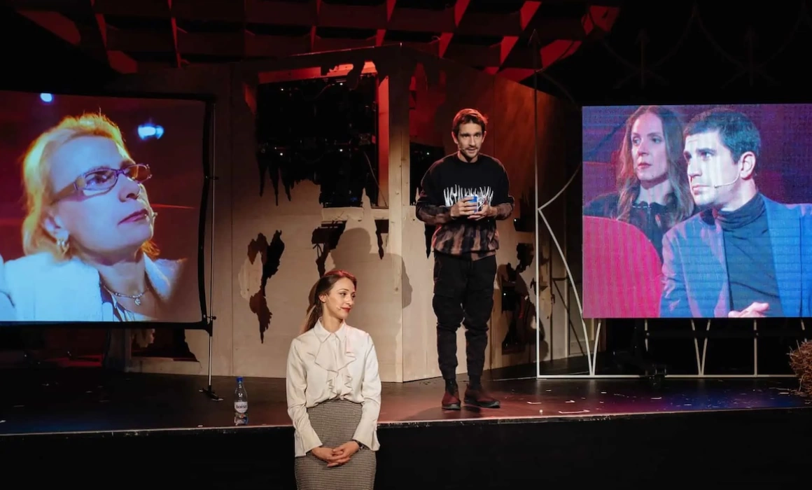 Premiera din debutul noului festival de la Teatrul Excelsior X-FEST, Două ore cu pauză marchează revenirea Gianinei Cărbunariu după mulți ani într-un teatru bucureștean. După cum sugerează titlul, spectacolul, care durează exact atât și are antract, este despre școală. Cărbunariu investighează viciile sistemului de învățământ din varii perspective, deconstruind mai mereu viziunea care pare majoritară pe câte un subiect. Spectacolul se bazează pe documentare și este construit din scene (capitole cu câte un motto) care reconstruiesc prin ficționalizare situații reale din ultimii ani, de la greva cadrelor didactice la incidente tensionate între profesor și elev ce includ agresivitate de ambele părți sau la joburile secundare și anumite acțiuni ale profesorilor care pot fi considerate imorale (de exemplu, job-uri în industria porno sau implicarea pe site-uri de dating). Asta amintește de filmul lui Radu Jude, Barbardeală cu bucluc sau porno balamuc, care punea în dezbatere relația dintre viața personală a unei profesoare și statutul profesional în conexiune cu o morală socială rigidă și ipocrită. Scena ședinței cu părinții din spectacolul lui Cărbunariu se conectează cu o scenă similară din filmul lui Jude ca exemplu de faună umană și ca panou de idei obtuze (ale părinților) care limitează educația la poleiala notării, fără vreun interes real pentru dezvoltarea gândirii copiilor.