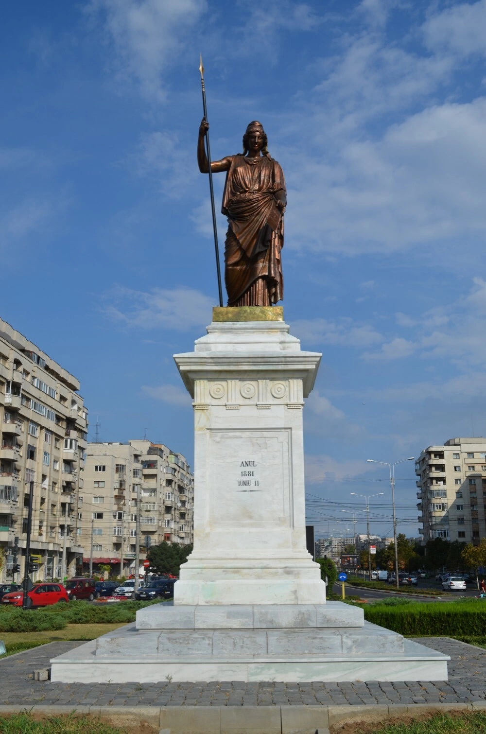 „Astăzi tinerii căsătoriți din Ploiești se fotografiază, după ceremonia de mariaj, în fata bustului lui Caragiale. (...) Ar fi putut să o facă în fața Statuii Libertății, Ploieștiul fiind, alături de New York și Paris, unul dintre cele trei orașe ale lumii care posedă un asemenea monument. Diferită ca înfățișare de celelalte două, fiindcă nu înalță o torță, ci are într-o mâna o lance iar în cealaltă o carte deschisă pe care e scris «Constituția și legea electorală», Statuia Libertății din Ploiești provine însă tot din Franța. A fost cumpărată oarecum la solduri, era gata turnată, banii strânși prin «subscripțiune natională» de liberalii români la inițiativa lui C.A. Rosetti și Dimitrie Brătianu nefiind de ajuns pentru a se comanda un monument original. I s-au făcut totuși câteva retușuri, pentru a fi adaptată noii destinații. Fusese inițial o statuie a Minervei (de aceea are lance), iar coiful i-a fost schimbat cu o revoluționară bonetă frigiană. Adusă în România în 1876, avea să fie instalată abia în 1881, pe un frumos soclu de marmură albă de Provita, operă a arhitectului Toma N. Socolescu”.