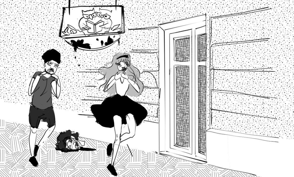 Am mai fost să cumpărăm cărți și de la librăria La două Bufnițe, din Piața Unirii, și a trebuit să traversăm Piața Libertății, unde am dat peste multe gropi. Au apărut când primăria a încercat să astupe o groapă săpând altă groapă și folosind pământul din ea. Evident, acest lucru n-a funcționat, pentru că apăruse altă groapă care trebuia astupată. În curând, gropile s-au înmulțit, iar primăria s-a decis să planteze niște copaci în ele. Oricum, să nu vă așteptați că o să vedeți bufnițe la librăria La două Bufnițe. Singurele bufnițe pe care le-am putut vedea erau în sigla librăriei, care atârna deasupra intrării. Păreau captive, ca într-o colivie bidimensională, iar colivia avea formă de lamă de ghilotină. Intrarea, deci, era un fel de loc de sacrificiu. Oamenii intrau ținându-se de gât, să nu-și piardă capul. Era ca un fel de ritual. Părea totul foarte bizar, dar cine eram noi să ne împotrivim cutumelor scenei culturale din Timișoara, așa că ne-am luat de gât și am intrat. În interiorul librăriei veți găsi cărți, uneori și scriitori. Numai să nu uitați să vă țineți de gât la ieșire. Au avut loc accidente.
