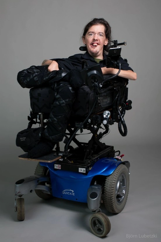 „A fost un proces”, începe Christian. „Eram un puști, aveam 13 sau 14 ani. După cum îți poți închipui, aveam parte de respingeri foarte des. Nu știu cum s-a schimbat treaba asta, poate datorită propriei mele atitudini pozitive, dar când eram tânăr aveam senzația că nu îmi voi găsi niciodată o prietenă. Nu e ca și cum nu aș fi avut nevoi sexuale, toată lumea le are, dar îmi formasem convingerea că nu voi putea niciodată să mi le satisfac. Asta s-a schimbat la 25 de ani, când am întâlnit-o pe prima mea iubită. A venit ea spre mine, mi-a vorbit, a flirtat cu mine și am simțit că mă dorește. N-aș fi îndrăznit vreodată să fac eu primul pas pentru că frica de respingere mă paraliza chiar mai mult decât atrofia musculară spinală. Relația asta a fost una destul de normală, dar am avut probleme cu asistenții mei, care nu voiau deloc să accepte că am și eu o iubită și încercau să ne îndepărteze. N-a fost, totuși, o relație foarte creativă din punct de vedere sexual. După ce s-a terminat, am vrut să experimentez mai mult. Acum, că sunt din nou singur, m-am gândit, ce-aș putea face cu dorințele mele sexuale? Sunt un tocilar, sunt un tip creativ, așa că am început să petrec timp cu oameni care gândesc ca mine, oameni deschiși din punct de vedere sexual și care experimentează mult. Am intrat pe scena de swingeri, am încercat poliamorul și sunt foarte bucuros că am avut parte de toate aceste experiențe. Am avut mai multe relații de scurtă sau mai lungă durată, mi-am dat seama că nu sunt făcut pentru o relație stabilă, ci mai degrabă mă simt bine într-un soi de prietenie deschisă cu beneficii, înțelegi ce vreau să zic. Ca urmare a acestui întreg proces de explorare, am crescut ca persoană, am experimentat tot mai mult, am început să-mi cunosc corpul și sexualitatea mai bine. Așa că tot acest proces m-a ajutat să capăt siguranța și încrederea de care aveam nevoie ca să intru într-o nouă relație stabilă care ține deja de câțiva ani și nu pare că ne vom despărți în zilele următoare.”