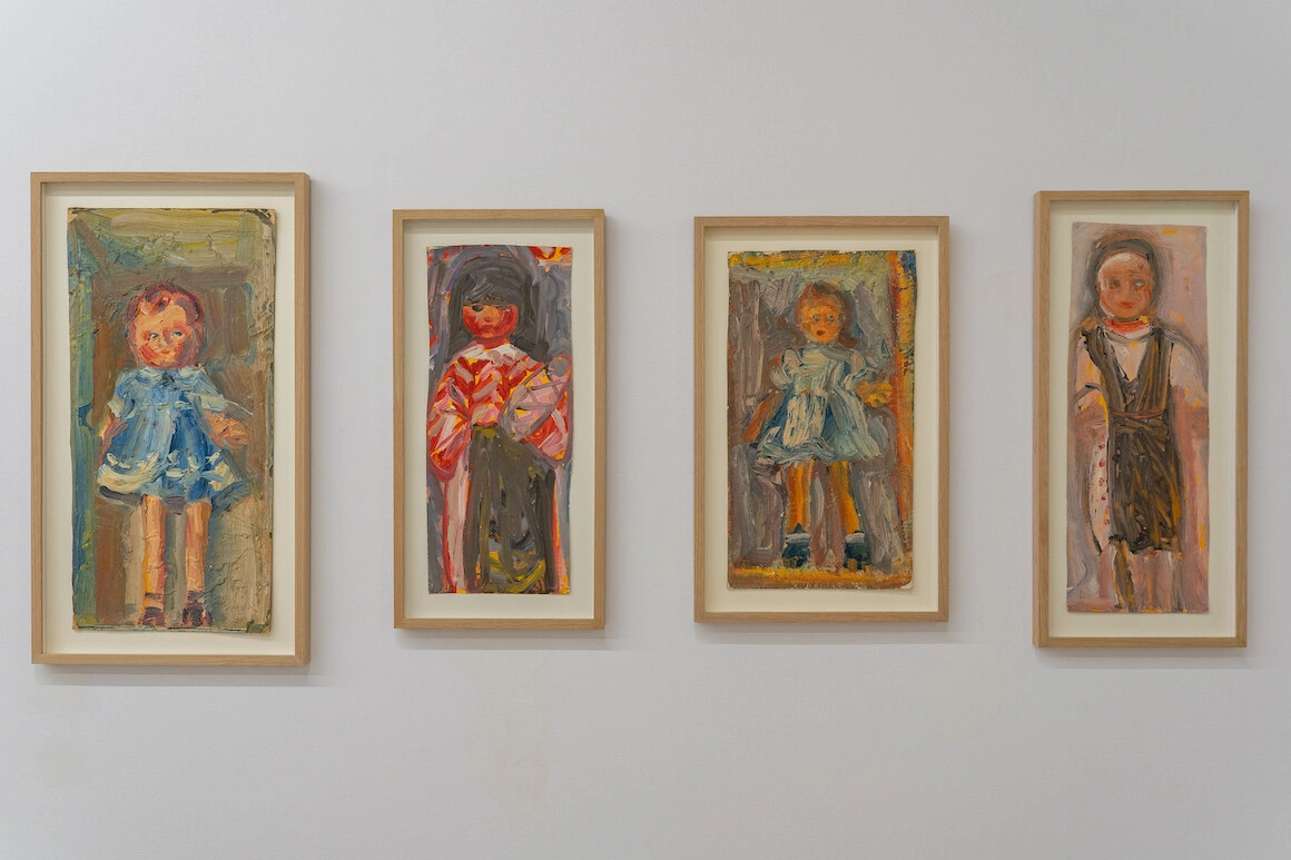 Tocmai pentru a continua comentariul pe marginea acestei tendințe de uniformizare vin și tablourile cu păpuși în cutii. Jucăriile cu ochii de peruzea abia primesc câțiva centimetri între ele și marginea tabloului, ceea ce curatoarei îi sugerează un fel de pat a lui Procust, „încercarea de încadrare cu orice preț”.