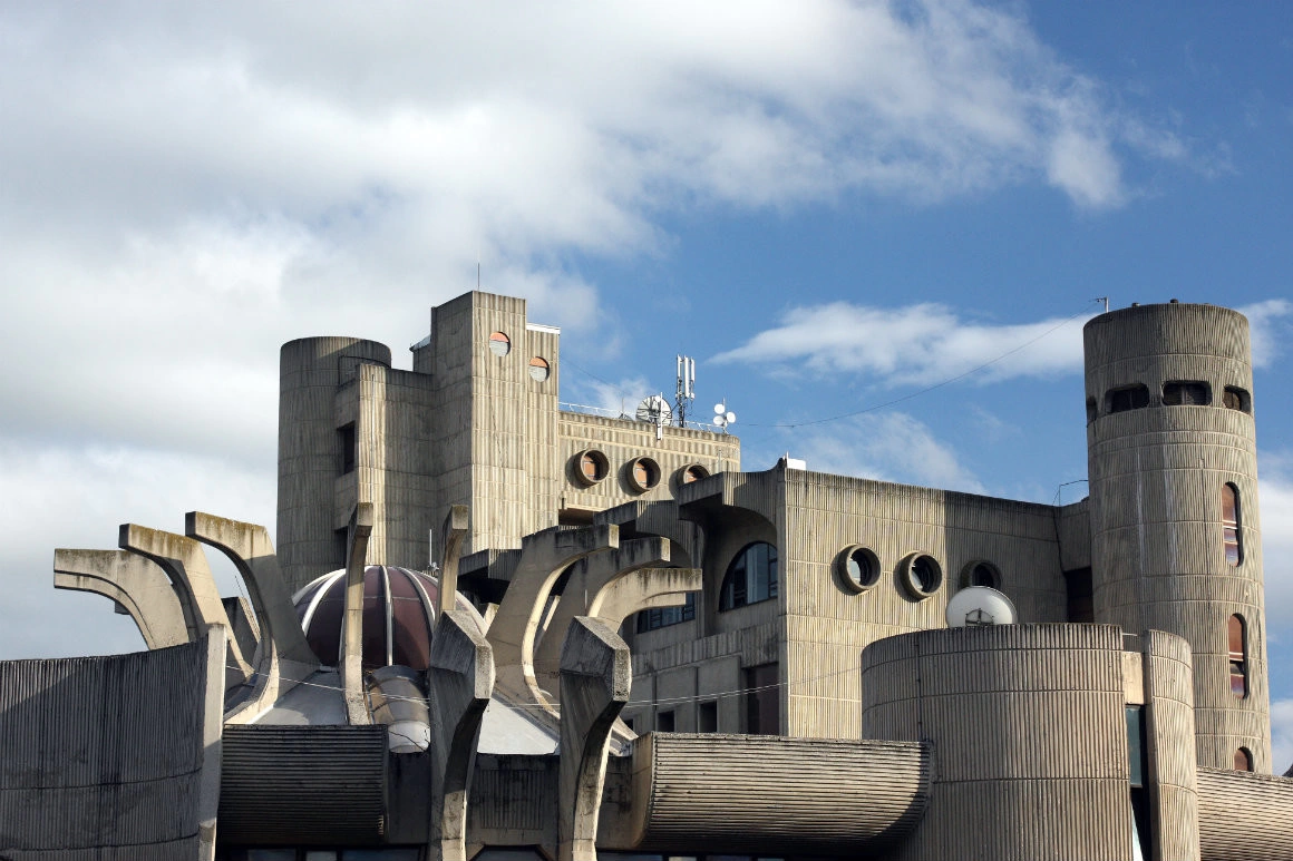 În 1963, un cutremur de 6,1 grade pe scara Richter a lovit Skopje, a distrus jumătate de oraș și a omorât peste 1.000 de oameni. Iugoslavii au făcut un concurs internațional, pe care l-a câștigat un titrat arhitect nipon pe nume Kenzo Tange. Tange e știut de mai oricine în Skopje, indiferent dacă-i apreciază sau nu stilul brutalist. Câteva dintre clădirile brutaliste au scăpat neatinse de #skopje2014: poate cele mai frumoase sunt fosta clădire a Ministerului de Telecomunicații și Universitatea Sf. Chiril și Metodiu, dar nici peroanele din gară, detaliile de pe blocuri sau poșta nu-s de ici, de colo.