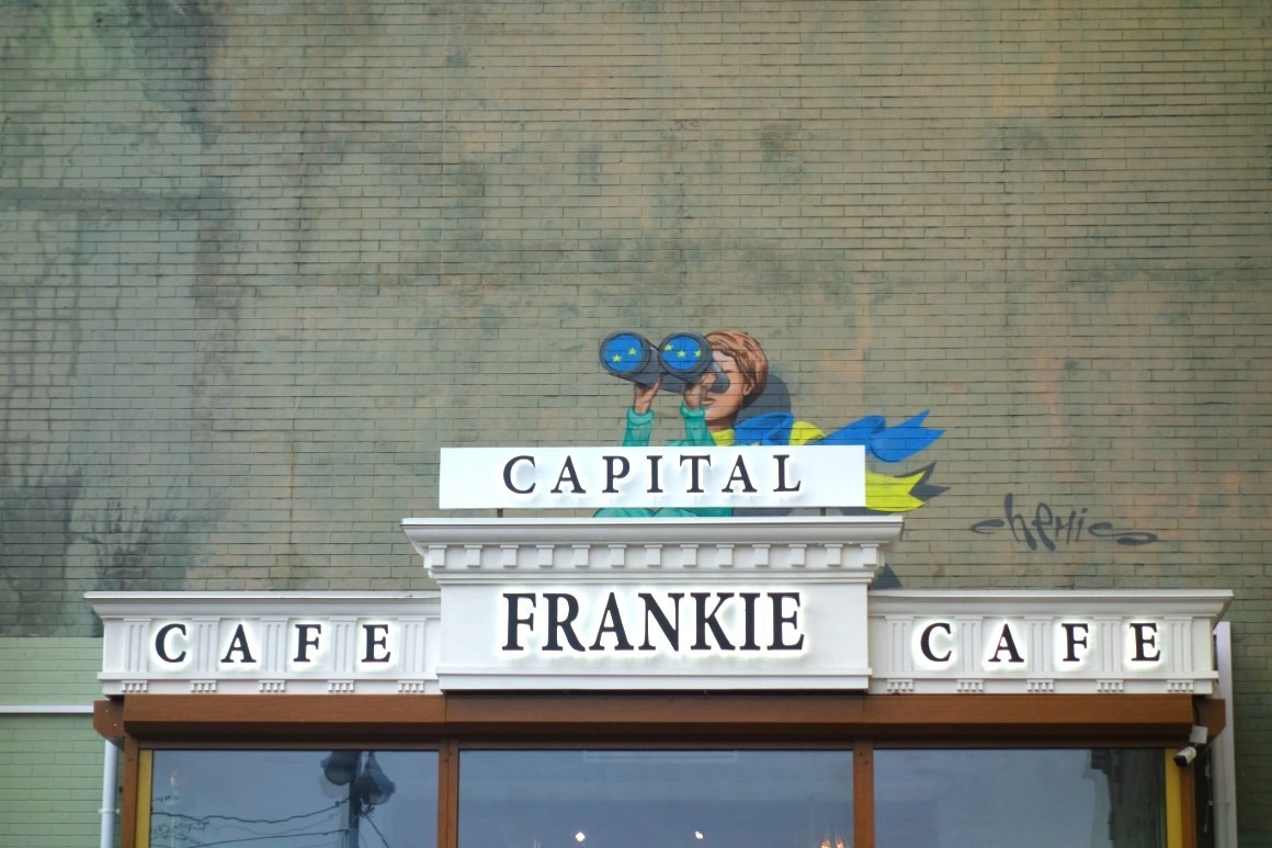 Malul stâng, unde mă învârt eu, e lumea veche - biserici cu turle aurite în formă de cepe, case înguste și colorate, graffiti-uri spectaculoase, restaurante, baruri, cluburi și cafenele care-ar putea lejer să stea în București sau orice alt oraș supranumit în ultimii ani „Noul Berlin”. Pe stradă mă opresc voluntari care împart flyere anti-Zelenski, societatea civilă e activă aici. Iar când vii din vest, fie și doar din România, te frapează cât de ieftină e viața. (Un pachet de țigări costă echivalentul a 7 lei.) Salariile sunt cu peste 50% mai mari la București, însă traiul, de la cumpărături la utilități și costurile creșterii unui copil, e mai scump la noi decât la Kiev.