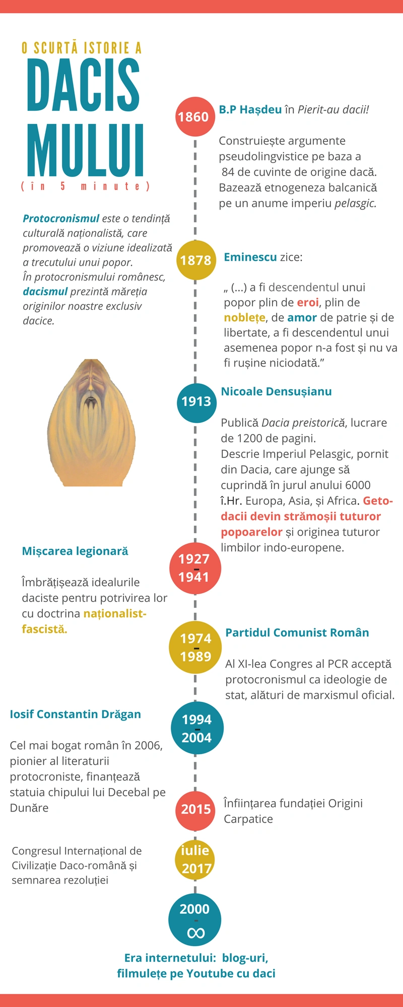 Daciștii neagă însă că romanii ar fi altceva decât niște moștenitori ai geto-dacilor și că limba latină și romanizarea poporului dac ar fi existat vreodată. „Într-adevăr susțin predarea istoriei adevărate, atestate științific, cu originile noastre daco-romane, și îmi doresc ca implicarea celor tineri în cunoașterea istoriei să se facă cu mijloacele agreate de aceștia”, a adăugat ministrul Culturii. Lucian Romașcanu ne-a mai comunicat că el a fost dintotdeauna un exponent al scenei culturale buzoiene, încă de când se afla pe băncile liceului şi cânta în formația rock „Top T83”.