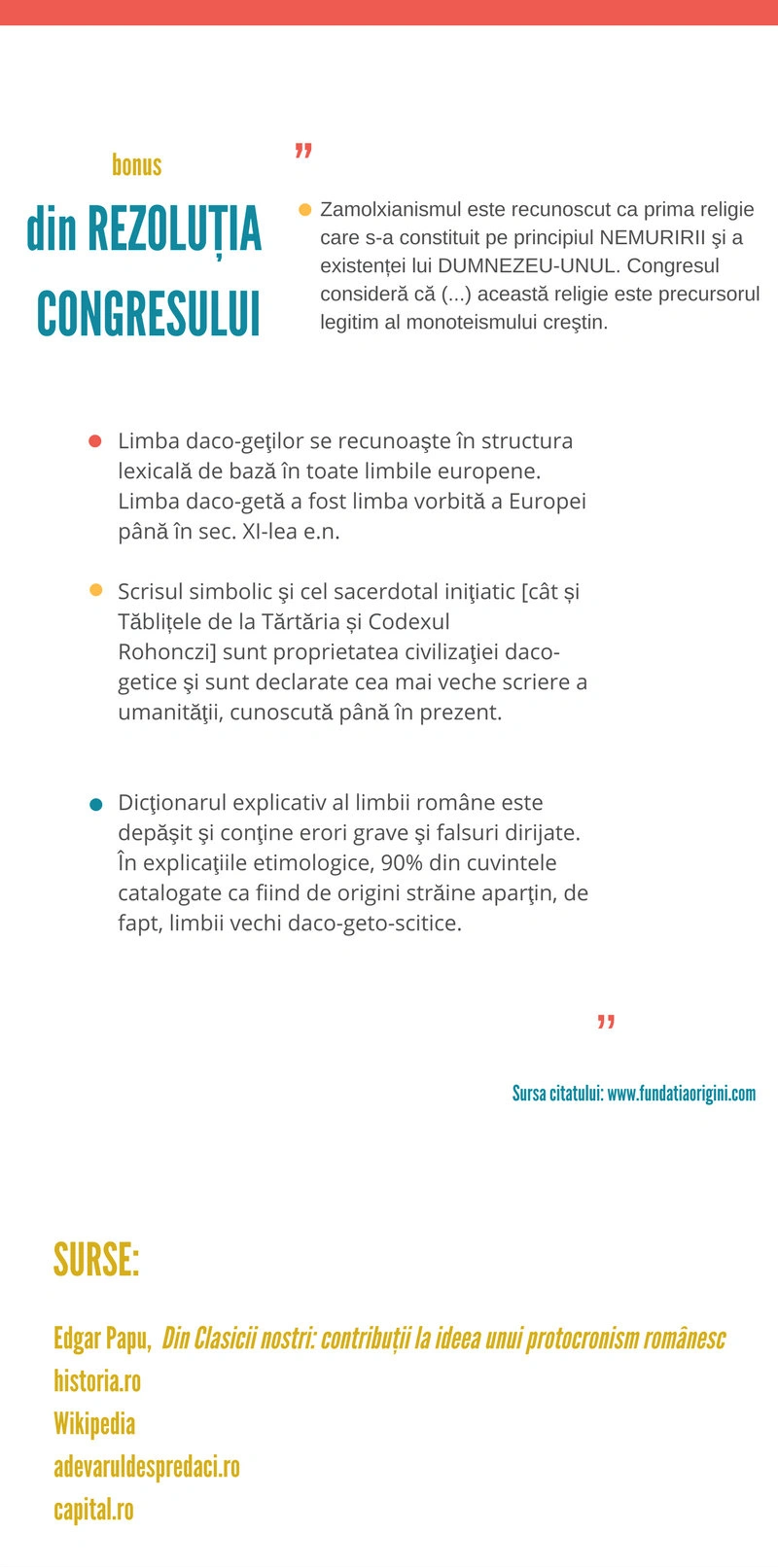 Ulterior, îl contactăm pe Lucian Romașcanu, ca să lămurim dacă are de gând să propună să se facă mai mult loc pentru daci în programa școlară. Pe mail, e mai rezervat: menționează că nu a participat la lucrările prezentate în cadrul congresului, deci nu poate afirma că „aderă” la acele idei, că nu crede că Academia Română ne ascunde adevărul istoric, așa cum susțin daciștii pursânge, și arată că „etnogeneza poporului român este indubitabil legată de contactele dintre daci și romani.”