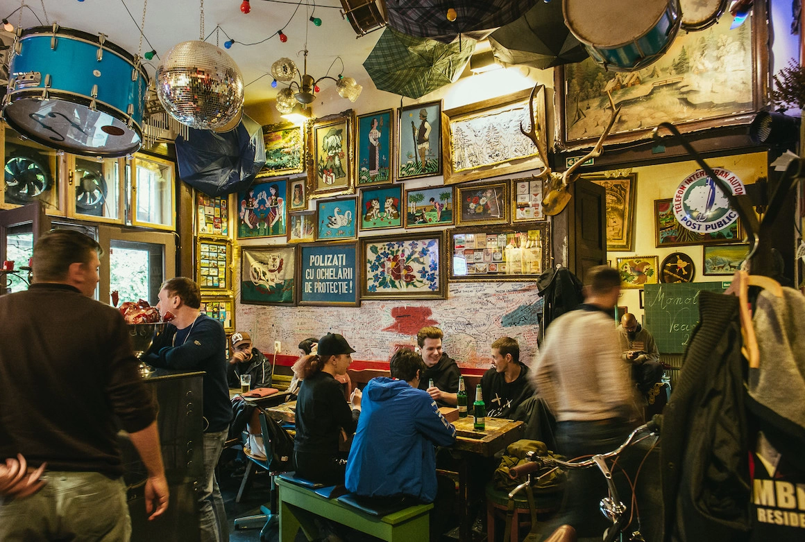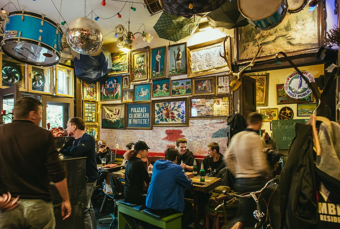 Dacă ajungi în Timișoara, nu poți să ratezi locul ăsta. Un hub cultural independent devenit deja iconic, Scârțul e și bar, e și spațiu de teatru pentru trupa Auăleu și are la subsol și un Muzeu al Consumatorului Comunist, creat în 2015. Povestea Teatrului Auăleu începe în 2005, când Ovidiu Mihăiță, Ioan Codrea și Christine Cizmaș (pe atunci studenți) au deschis un teatru într-un garaj (de aici și numele Teatrul de Garaj și Curte), ca mai apoi să se mute aici. Scârțul te copleșește de cum intri prin aglomerarea de obiecte și afișe (de la geamantane vechi la umbrele și tobe agățate în tavan) dar fără să fie deloc obositor. Mai degrabă, ai o senzație de rupere de realitate, iar sentimentul ăsta se amplifică odată ce cobori în Muzeul Consumatorului Comunist. Aici ai toate șansele să aluneci pe panta nostalgiei și te pierzi în mulțimea de cărți, reviste, hărți, păpuși, discuri, aparate de radio, bibelouri, sticle, farfurii, borcane și etichete dintr-o altă viață. Ca să nu mai zic de mirosul ăla ușor stătut de sufragerie cu mobilier greu (din epoca pre-Ikea), îmbrăcată în mileuri și carpete. „E greu de consumat teatrul dacă oamenii nu consumă ceva”, spune Ovidiu Mihăiță. „Dacă te uiți în istoria teatrului, în Grecia erau celebrele carnavaluri, festivaluri. Carnaval vine de la carne, festival de la festin, acolo se mânca, erau orgii, aveau plăcere carnală, stăteau la spectacole, consumau și katharsis, mergeau foarte bine împreună.” În seara când am ajuns eu la Scârț, nu se juca nimic. În schimb, am mâncat un gulaș genial.
