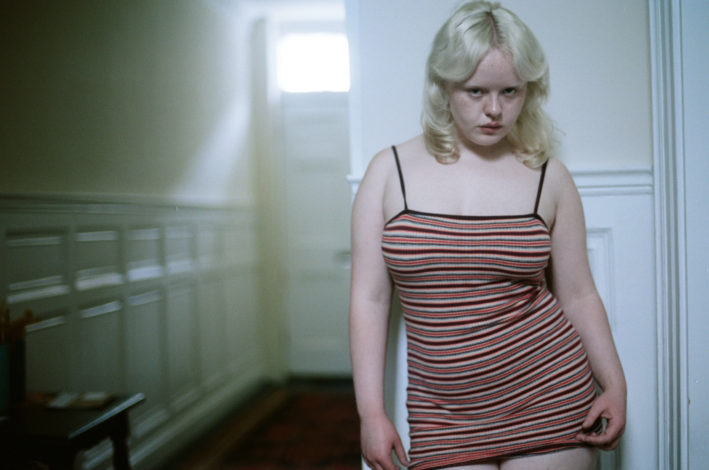 3. Chiar dacă imaginile au un aer „haunted”, nu evoci acea stare prin niște elemente evidente. Într-una dintre fotografii, un hol lung cu o lumină albă induce o neliniște subtilă; în altele, poate fi doar modul în care strălucește pielea, sau felul în care cad umbrele și se amestecă culorile. Acest tip de teatralitate în imagini este intenționată sau, uneori, apare pe parcursul procesului? Mai bine zis, cum gândești poveștile pe care le spui în imagine?