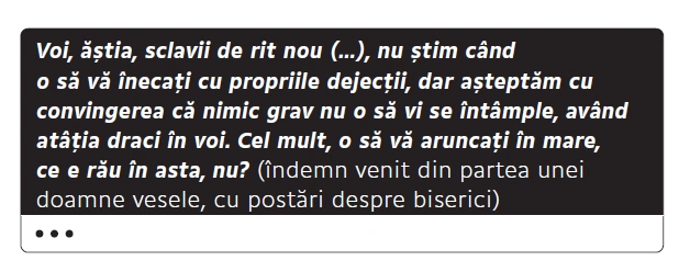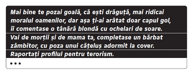 Furia mulțimilor online nu ține cont de statutul social al celor asupra cărora se năpustește. Ținta poate fi un star pop, un politician sau un angajat anonim. Ce diferă, însă, sunt cauzele care o pun în mișcare: deseori, ciocniri între convingeri diferite și dorința de a sancționa o nedreptate. Deși mobilizările online sunt, în unele cazuri, singura modalitate prin care se pot semnala abuzurile celor puternici, se întâmplă frecvent ca, sub pretextul căutării dreptății, să fie umiliți oameni ca mine și ca tine. Drumul de la activism la hărțuire durează uneori o fracțiune de secundă. Iar pentru ca demnitatea cuiva să fie distrusă online în timp-record, poate fi de ajuns un video.