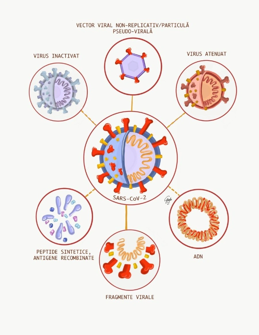 Dacă aruncați un ochi pe lista OMS de potențiale vaccinuri anti-COVID, o să înâlniți tot felul de drăcării. Fiecare vine la pachet cu avantaje şi dezavantaje şi am să vă dau câteva exemple de probleme care trebuie depăşite. Vaccinurile ADN și ARN au ca principiu inserţia acestor acizi nucleici în unele celule ale celor vaccinaţi, forţându-le să fabrice proteine virale imunogene. Deşi unele date recente par încurajatoare, au eficiență discutabilă la om, Vectorii nereplicativi sunt de fapt virusuri obişnuite, comune (e.g. adenovirus) modificate genetic ca să afişeze pe suprafaţa externă proteine SARS-CoV. Dar sunt atât de comune, încât mulți dintre noi ne-am întâlnit deja cu ele de-a lungul vieţii şi ca urmare, avem deja imunitate la ele și le neutralizăm înainte să își facă treaba. Virusurile atenuate ar fi variante de SARS-CoV-2 făcute mai puţin sau deloc patogene prin inginerie genetică. Sunt de departe cele mai imunogene, dar există riscul să redevină patogene în urma unor mutații, cum am mai păţit cu polio. În final, virusurile inactivate, fragmentele virale şi peptidele sintetice sunt toate relativ slab imunogene.