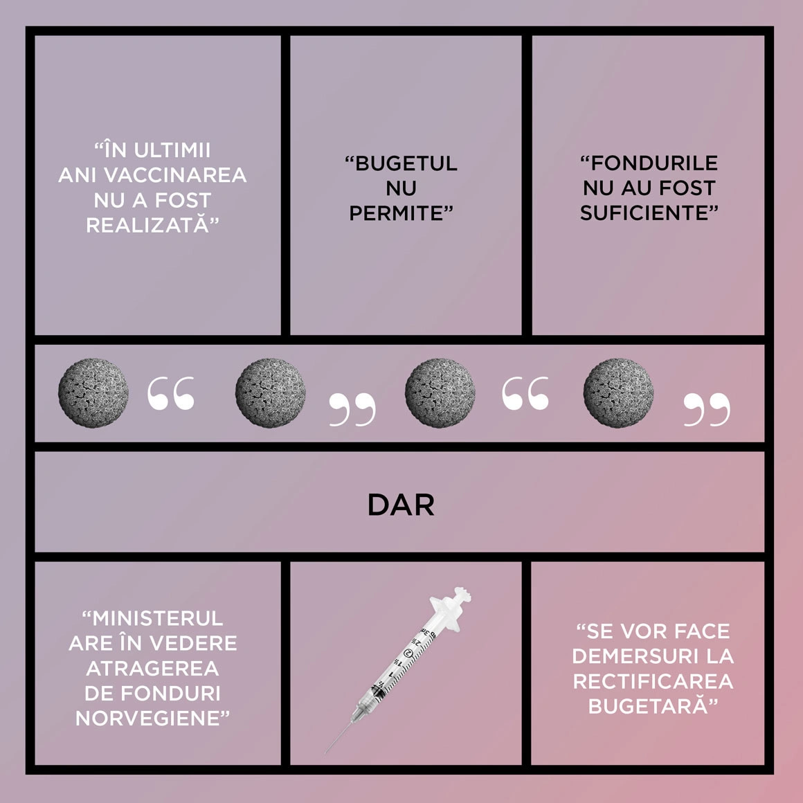 Celor patru deputați ministerul le-a răspuns cam la fel, cu aceleași diateze vagi care leagă timpii verbali ai unei promisiuni neîmplinite de un viitor plin de posibilități. „În ultimii ani vaccinarea nu a fost realizată“, fondurile „nu au fost suficiente“, „bugetul nu permite“. DAR: ministerul „are în vedere“ atragerea de fonduri norvegiene, „se vor face demersuri la rectificarea bugetară“. În nici unul dintre răspunsuri nu găsești responsabilitate sau explicații pentru constatările sale, reci ca o masă de morgă. Găsești în schimb, invariabil, „deosebită considerație“.