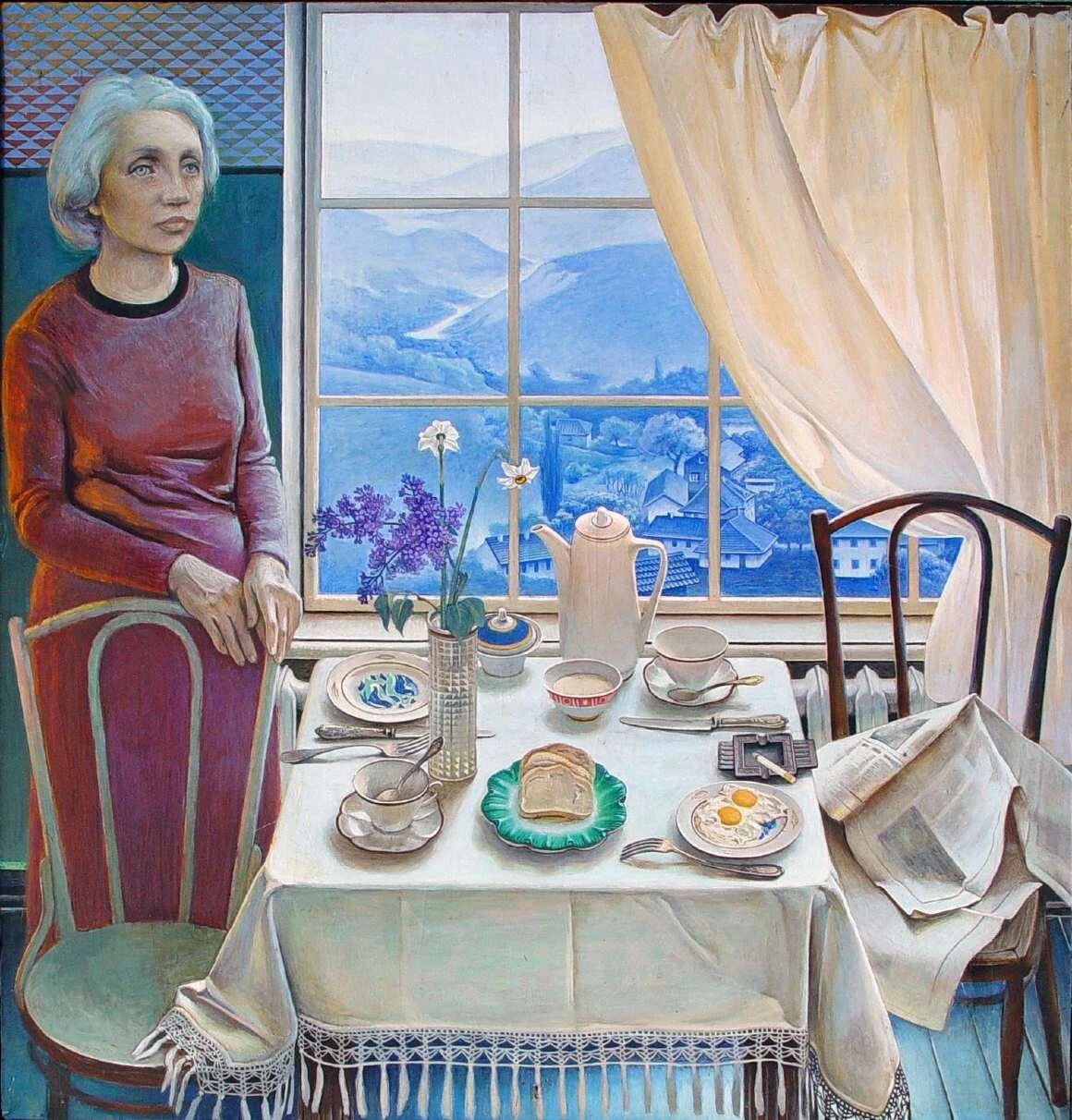 Tot în această perioadă, Valentina Rusu-Ciobanu preia elemente din fotorealism, curent dezvoltat în America anilor '60-'70, dar și în URSS, prin opera unor artiști precum Elena Romanova sau Dmitri Zhilinsky, care se concentrau pe reprezentarea vieții private a individului. Ambele influențe sunt vizibile în lucrarea Micul dejun, din 1980, în care apare sora artistei, privind în gol. Lângă ea se află o masă mică de bucătărie, pe care stă o farfurie cu ouă, căni și un ceainic de porțelan. Pe fereastră se vede un peisaj albăstrui. Controlul asupra mijloacelor și formelor, culorile electrizante, compoziția și gândirea riguroasă vin în contradicție cu spontaneitatea pe care o asociază artista cu această lucrare. „Tu credeai că așa [va arăta un tablou], dar iese altfel,” își amintește pictorița cum a surprins-o varianta finală a Micului dejun.