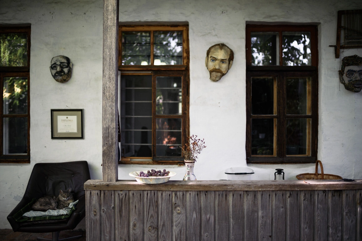 Auzisem de mult timp de minunata casă din centrul vechi al Chișinăului, în care locuiește pictorița, împreună cu fiul său, artistul Lică Sainciuc, și soția lui, Irina Șleahu, profesoară de muzică. Cum am intrat pe poartă, o explozie de verdeață m-a izbit în față: s-a deschis parcă de nicăieri o grădină mare, cu copaci bătrâni, meri cu roadă, colibe și mai ales o casă albă, cu un singur etaj și prispă lungă, unde Valentina Rusu Ciobanu se așază în timpul zilei să-și admire grădina. O casă tipic orășenească de la sfârșitul secolului 19, îmi explică Lică, din care, atunci când au luat sovieticii Basarabia, socrul artistei a vândut o parte, pentru a evita naționalizarea. Familia a reușit să răscumpere abia acum un an partea lipsă din casa unde a trăit o viață. Pentru Chișinău, unde mai întâi războiul, apoi neglijența și interesele comerciale de după anii '90 au distrus atâta arhitectură, casa Sainciuc-Rusu Ciobanu e un monument istoric. Pe pereți, între ferestre, sunt atârnate măștile create de soțul acesteia, artistul Glebus Sainciuc, care a murit acum opt ani.