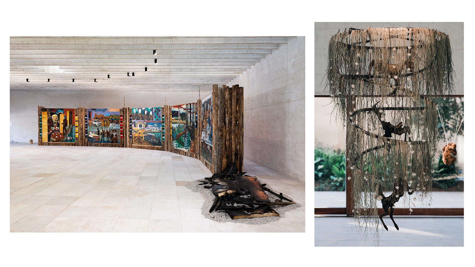 Our message is, please do not buy our land, buy our art instead. Într-o premieră istorică, la pavilionul nordic, s-au instalat trei artiști Sámi, un popor indigen care trăiește în Norvegia, Suedia, Finlanda și în Peninsula Kola din Rusia. Pavilionul Sámi este reprezentat într-un discurs despre schimbarea climatică, trecutul colonial al Suediei, drepturile și existența indigenilor. În picturile-instalație ale artistului Anders Sunna, sunt incorporate documente ale conflictului pe care familia lui o duce de aproape 50 de ani cu guvernul, pentru a-și apăra practicile ancestrale de creștere a renilor. Una din sculpturile artistei Máret Ánne Sara este compusă din tendoane de ren (!) – o experiență olfactivă puternică: un miros pentru frică, iar celălalt pentru speranță. Cea de-a treia lucrare este instalația video de Pauliina Feodoroff, care propune modalități de protejare a ultimelor păduri rămase și de a lăsa zonele exploatate să aibă timp să se vindece.